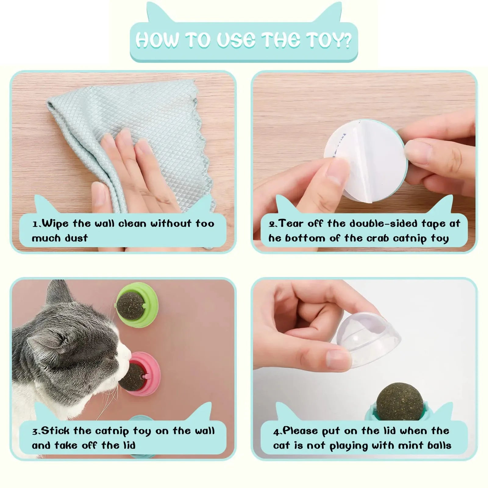 Natural Catnip Cat Wall Stick-on Ball Toy Scratchers Treats Healthy Natural Removes Balls to Promote Digestion Cat Pet Supplies