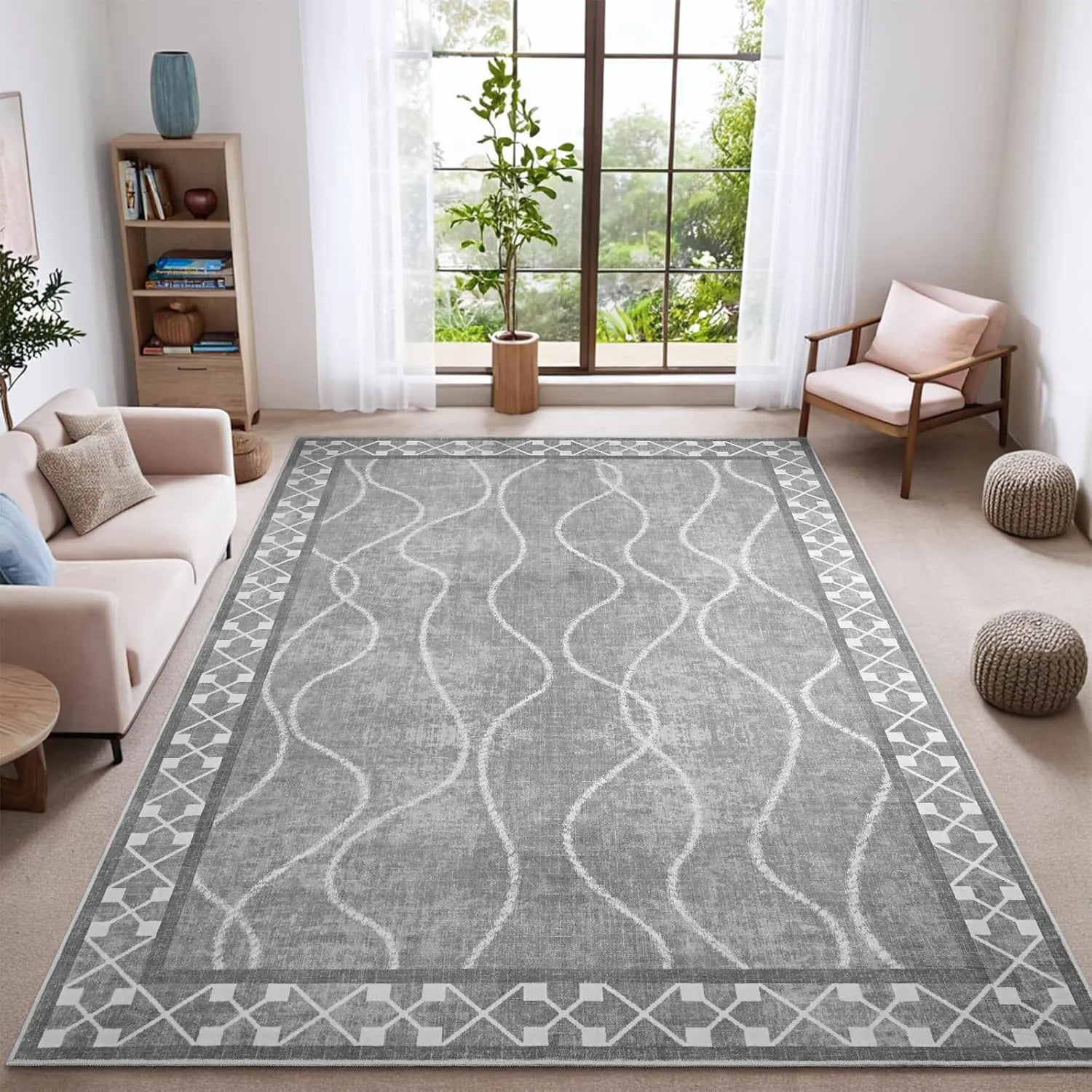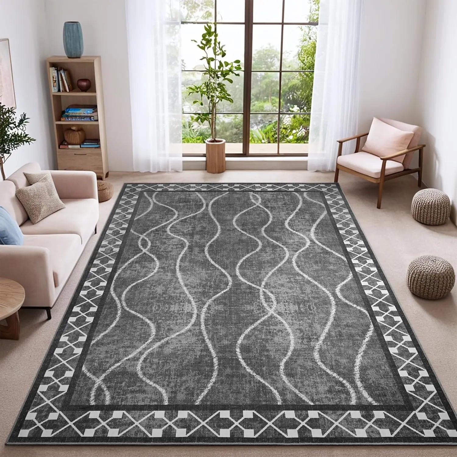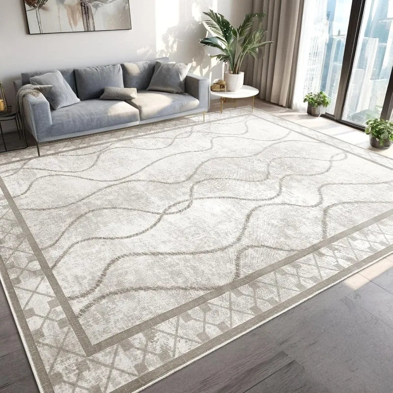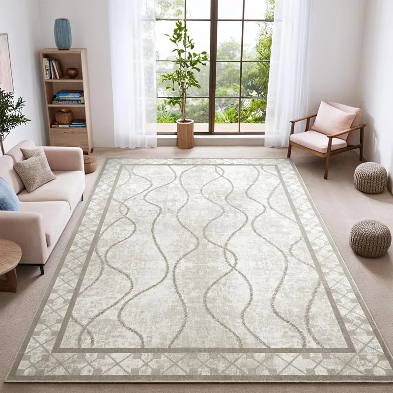 - [Modern Aesthetic Design] The living room rugs 6x9 are crafted from faux wool materials and features eye-catching bordered patterns, combining with stylish designs to create a clean and minimalist look, which is suitable for a variety of home decor styles. Perfect for bedroom, kitchen, dining room, home office, hallway, kids rooms and any indoor rooms