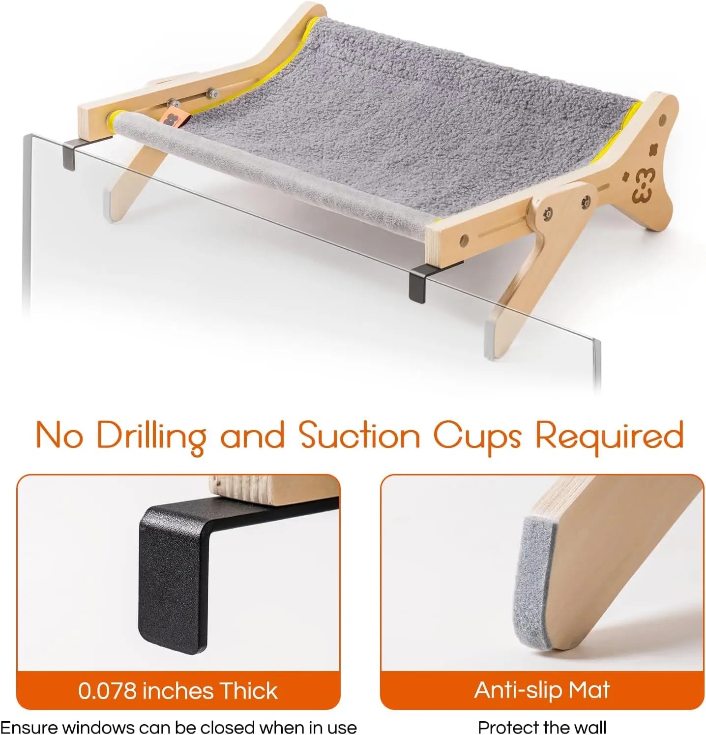 **2-in-1 Cat Window Perch & Bed:** Versatile design allows it to be used as a perch on windowsills, drawers, or bedside, or as a bed on any flat surface.