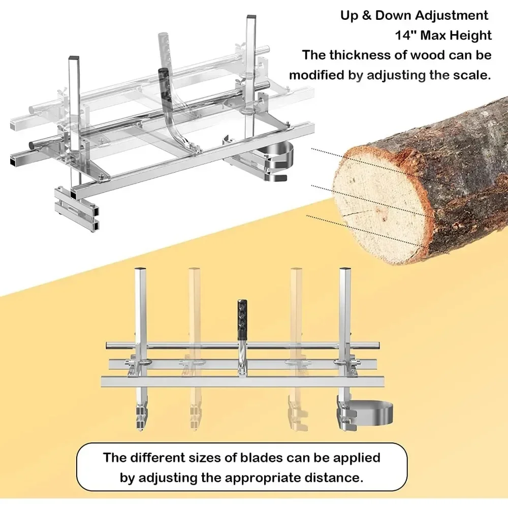 【Large cutting capacity】The 36-inch chainsaw mill allow you to mill large logs and create custom-sized lumber for 14''-36'' projects, giving you the flexibility to tackle bigger woodworking jobs.