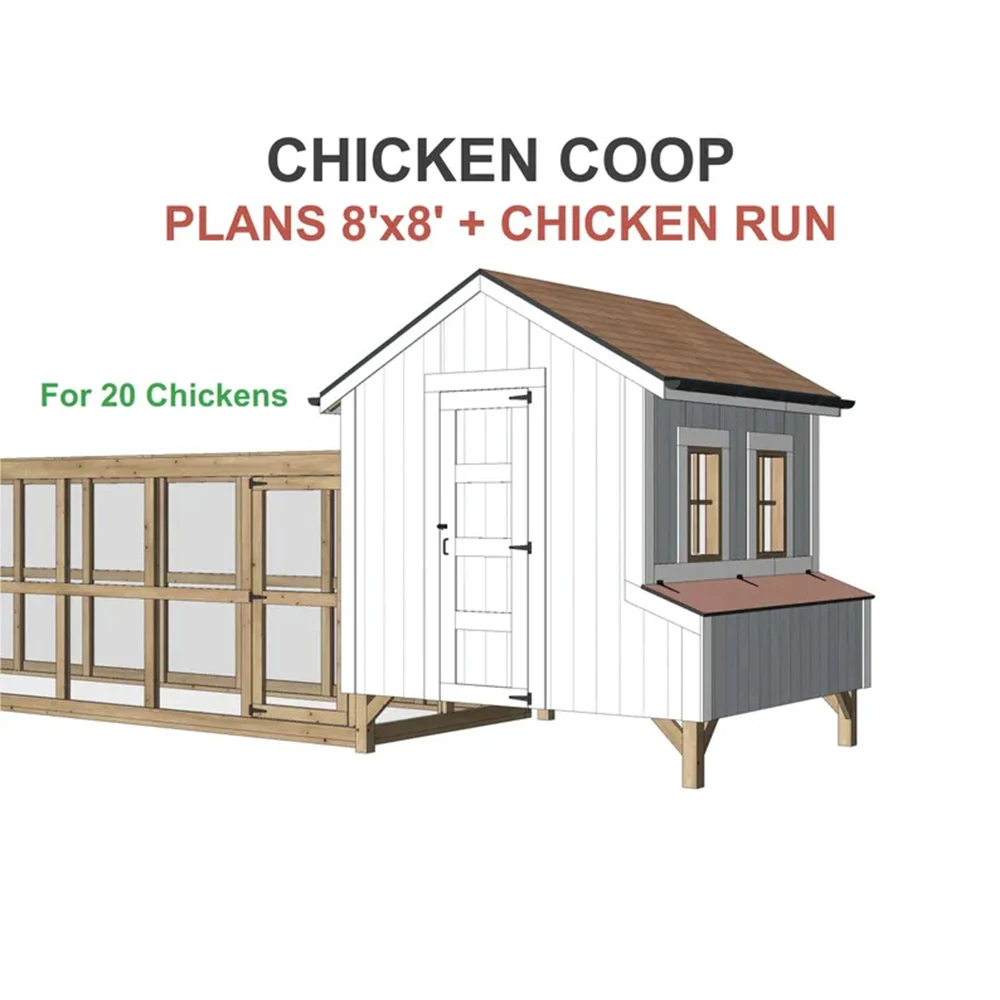 8x8 Chicken Coop Plans with 24ft Run – Ideal for Housing 16–20 Chickens