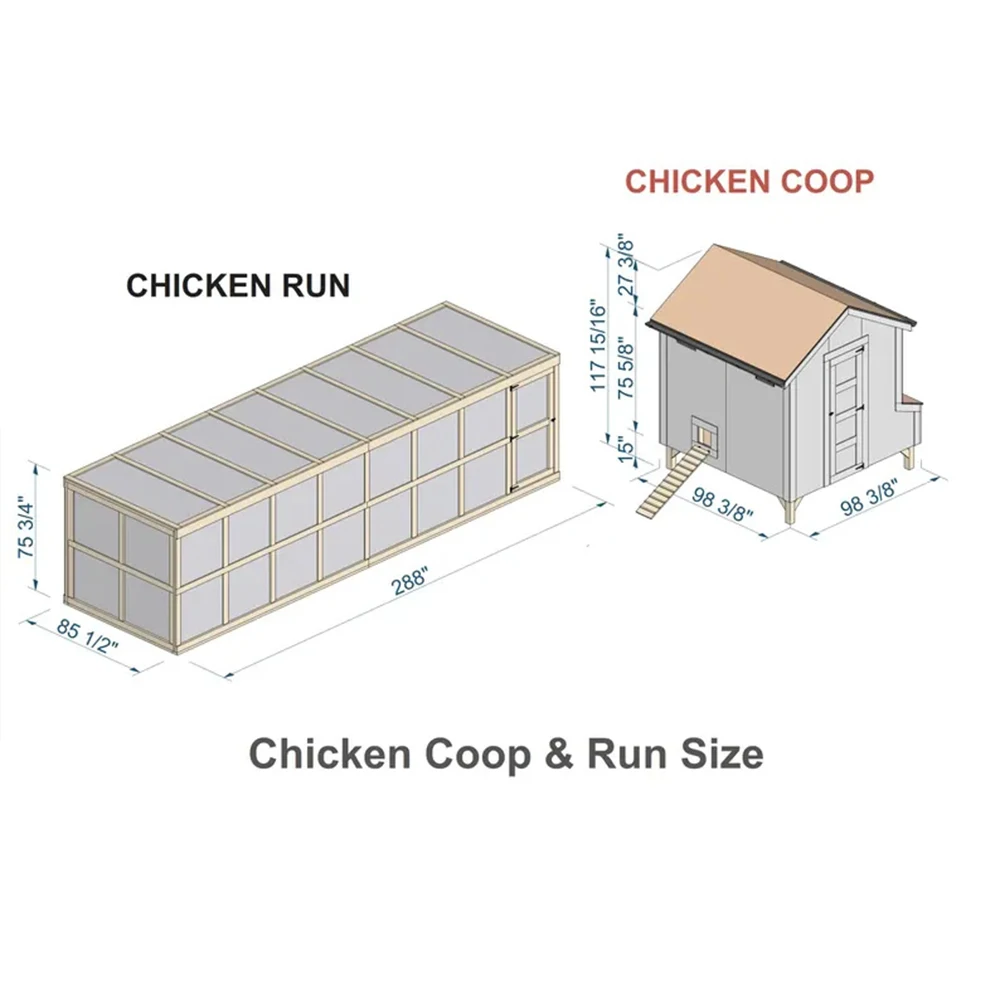 🔩 Building Size: Coop: 8x8 ft (2.43x2.43 m) | Run: 24x7 ft (7.3x2.2 m)