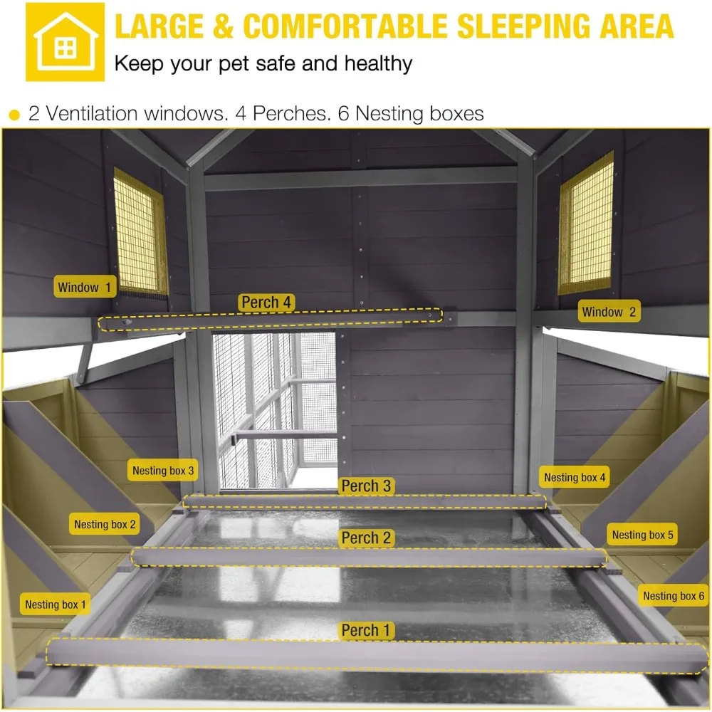FREE USA SHIPPING!!!!Extra Large Chicken House 41.3ft² for 8-10 Chickens Outdoor Wooden Hen House Poultry Cage with 6 Nesting Boxes, 6 Perches