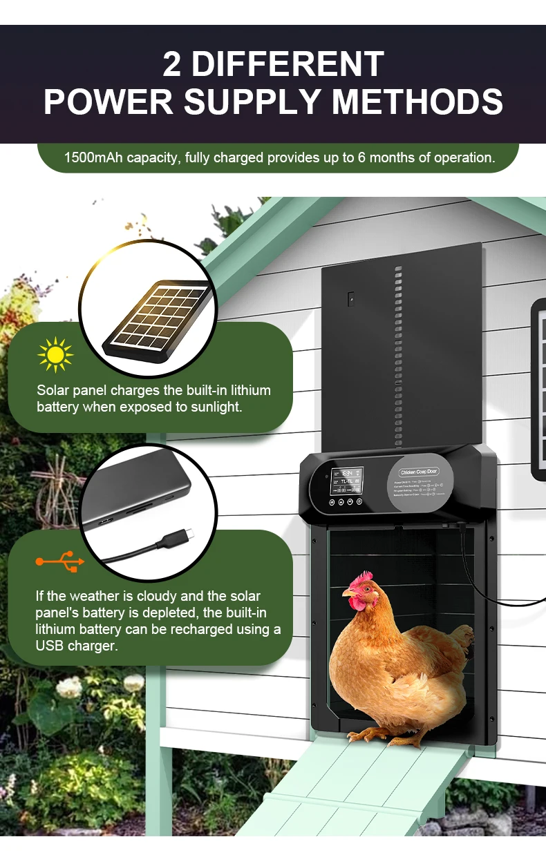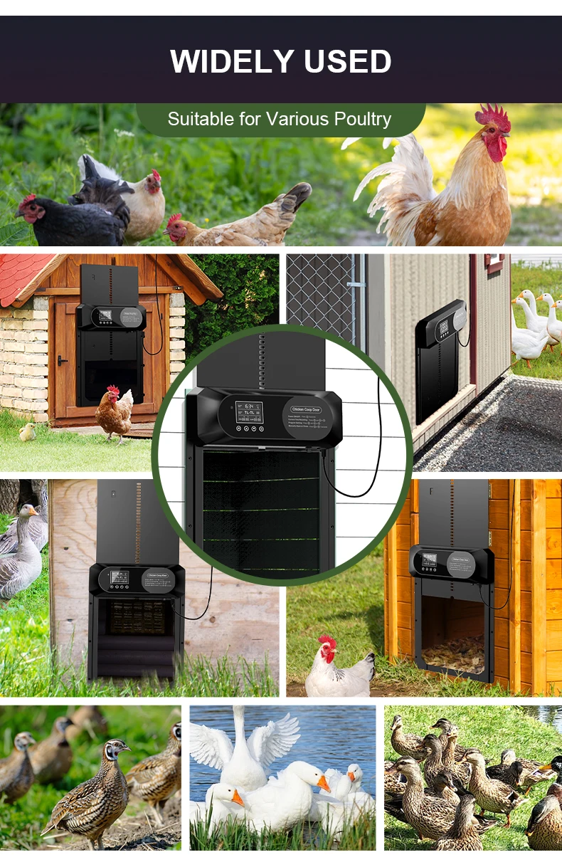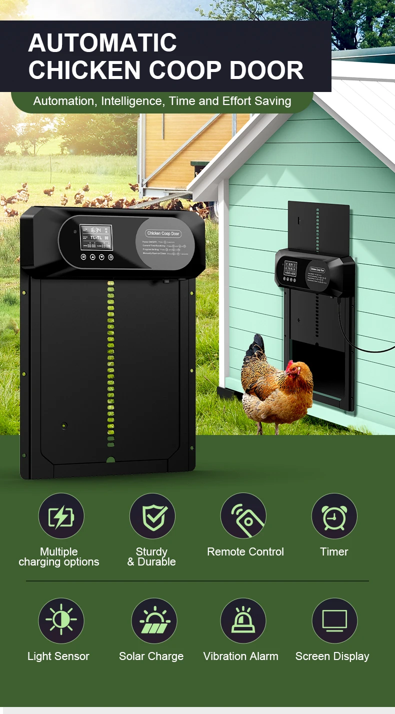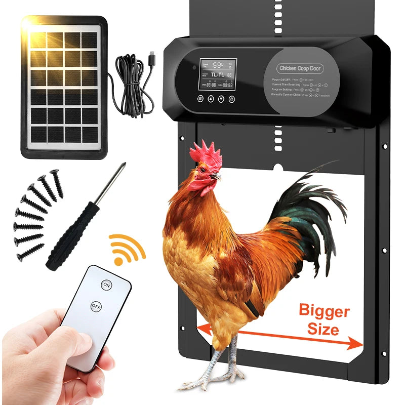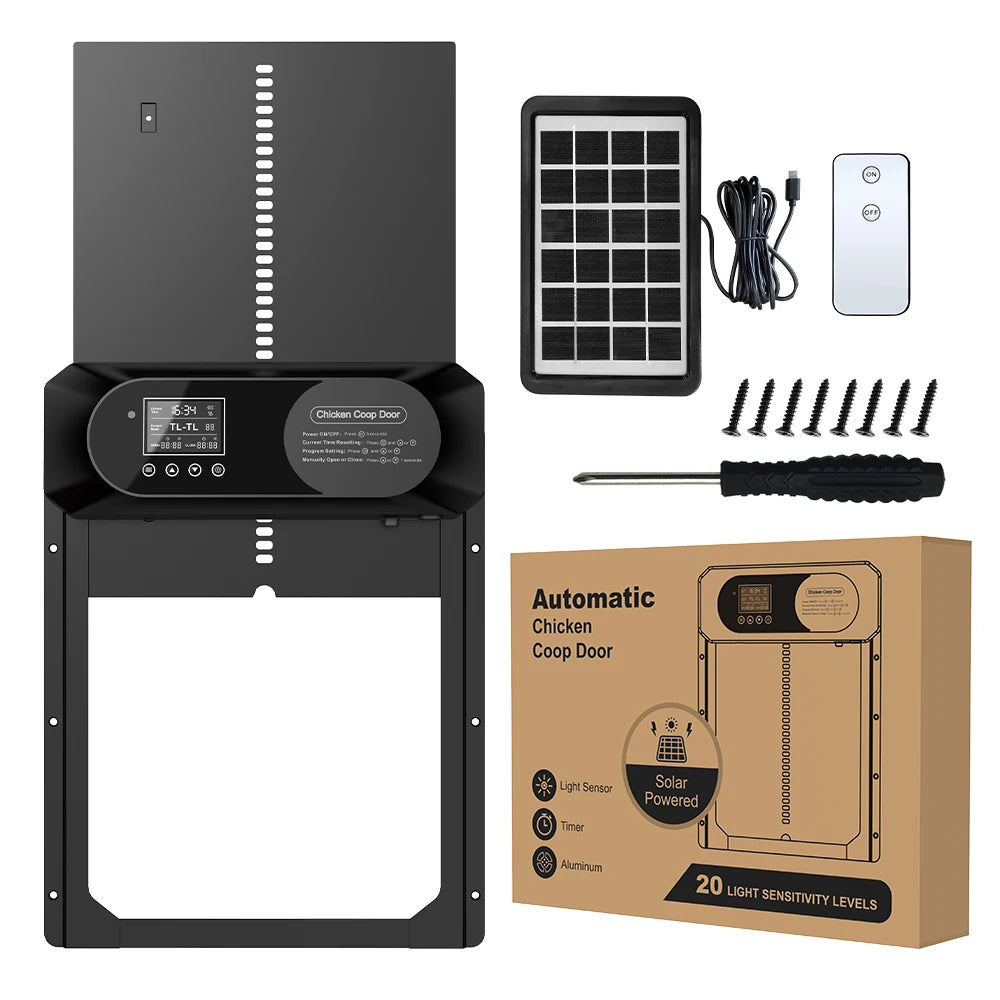 Fully automatic solar powered chicken coop door with remote control, timer, light sensor, chicken coop door, suitable for farms