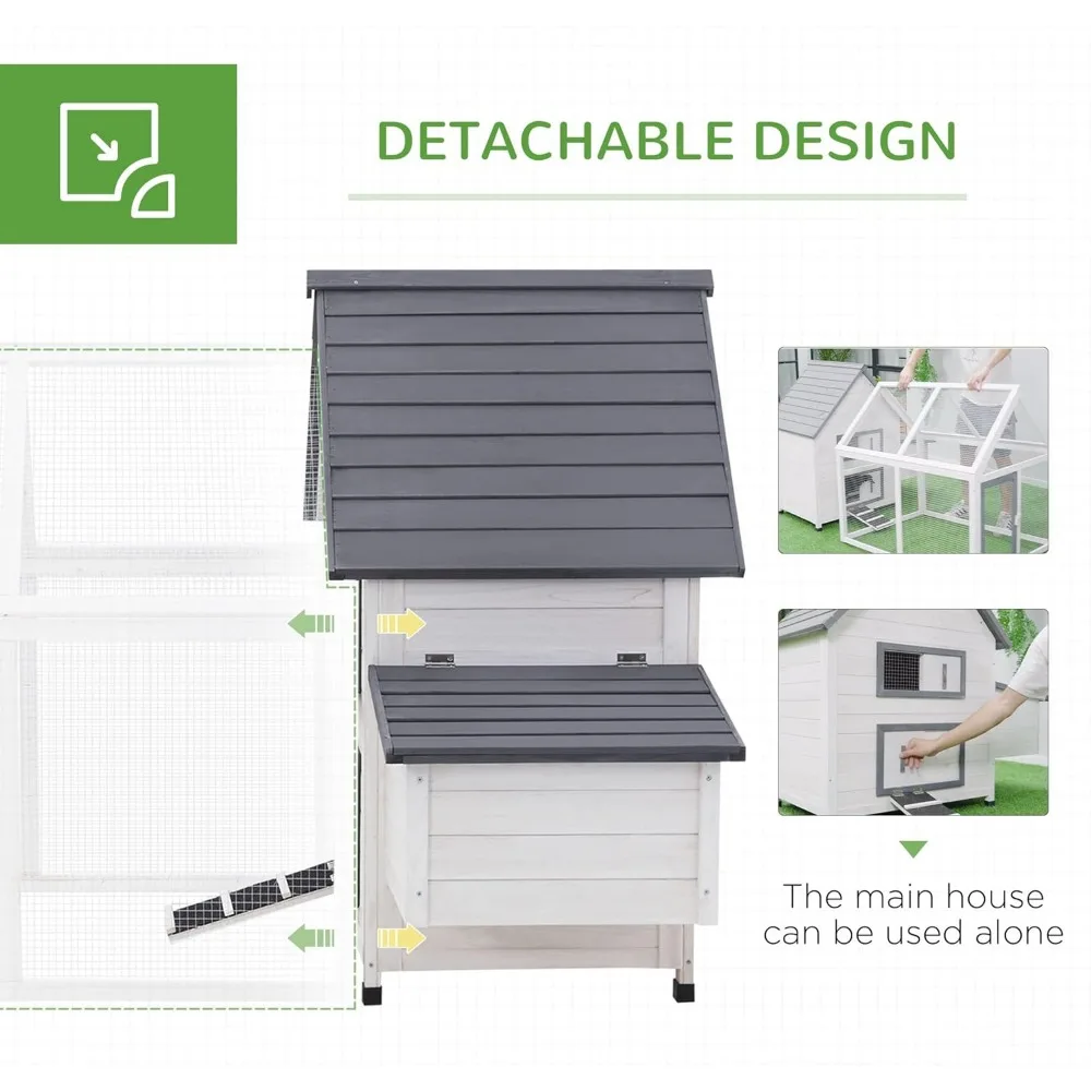 65" Chicken Coop Wooden with Detachable Run, Outdoor Chicken House Poultry Cage Hen with Nesting Box, Removable Tray, Roo