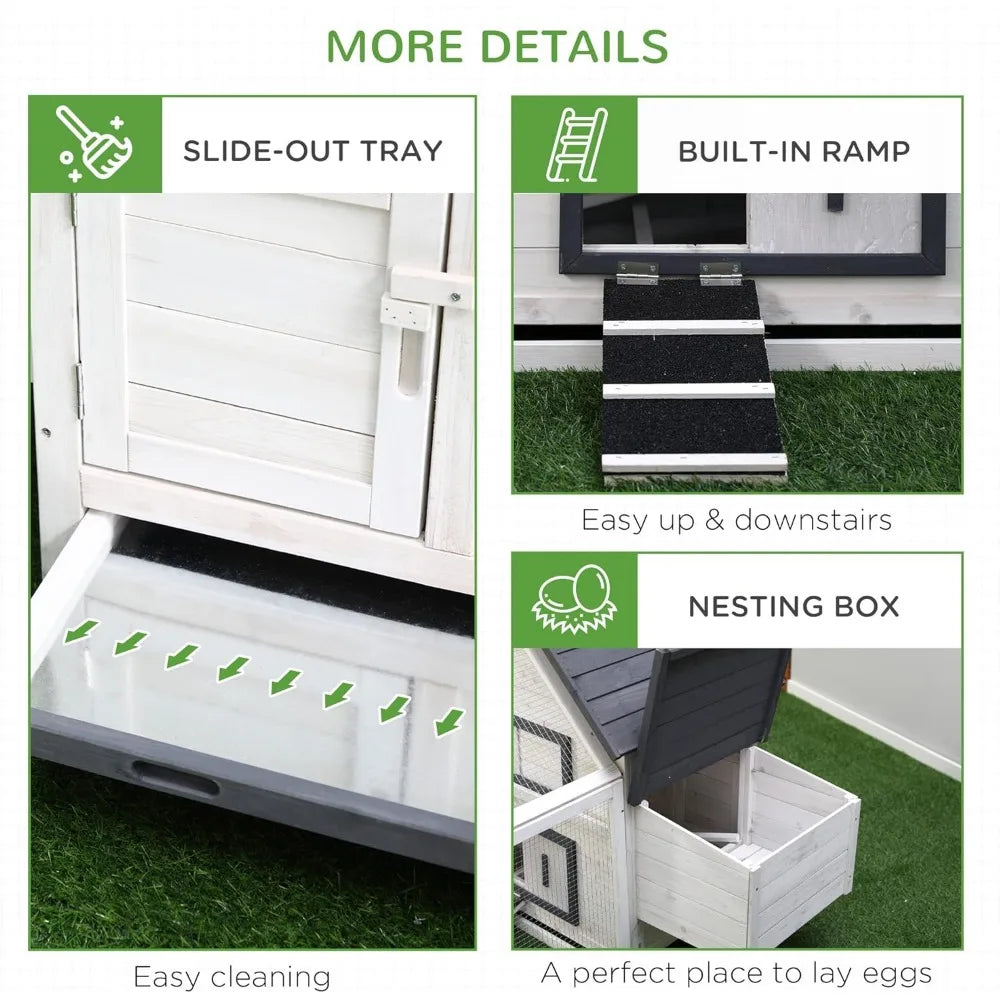 - Easy Clean Up: Cleaning is a breeze with the sliding tray. Simply slide it out to remove waste, keeping the chicken coop kit fresh and hygienic for your chickens.