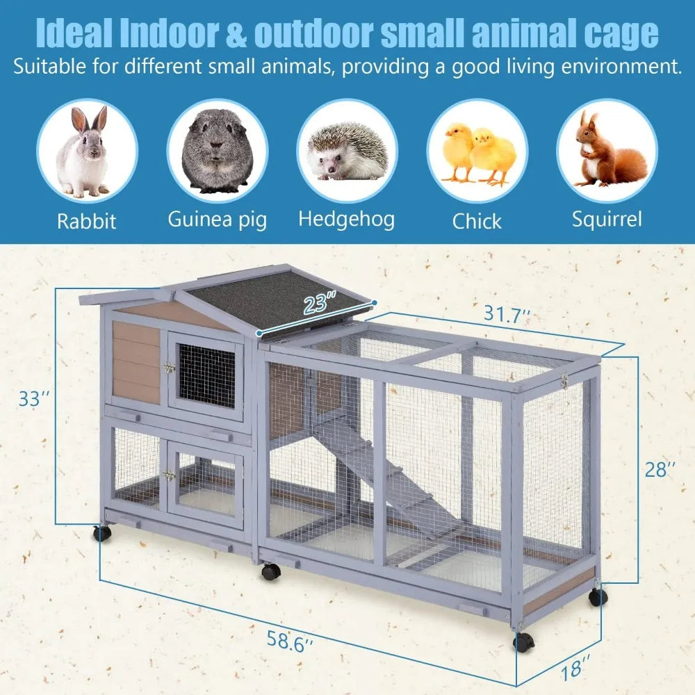 • HUMANIZED DESIGN:The Large activity space with three opening doors, which makes it easier for your lovely pet to come in and out. Also, multi-door design help you interactive with your pet, and clean the hutch easier.