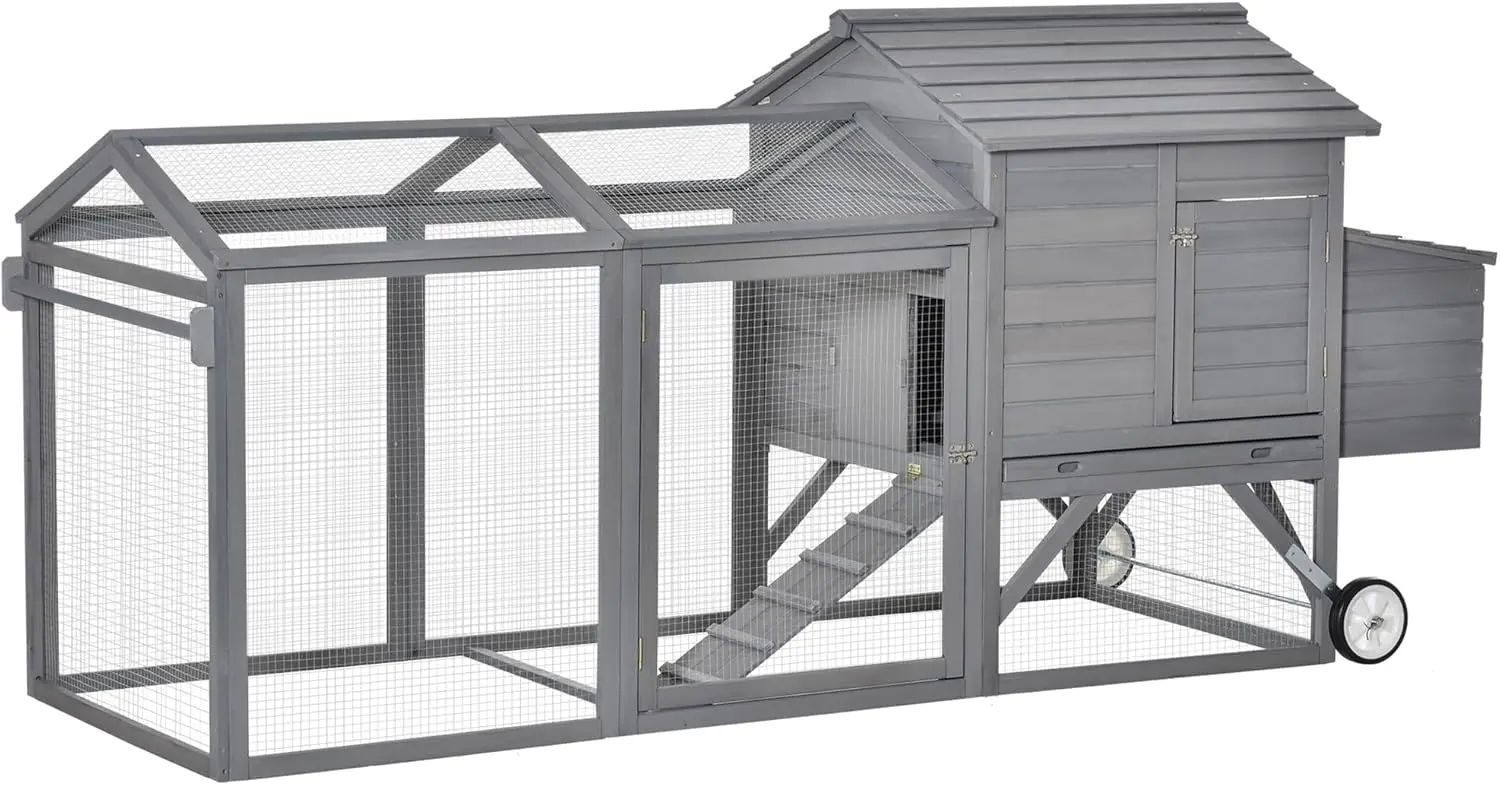 96.5" Chicken Coop Wooden Hen House Poultry Cage Pen Portable with Wheels and Nesting Box, Chicken Cage for Backyard Outdoor