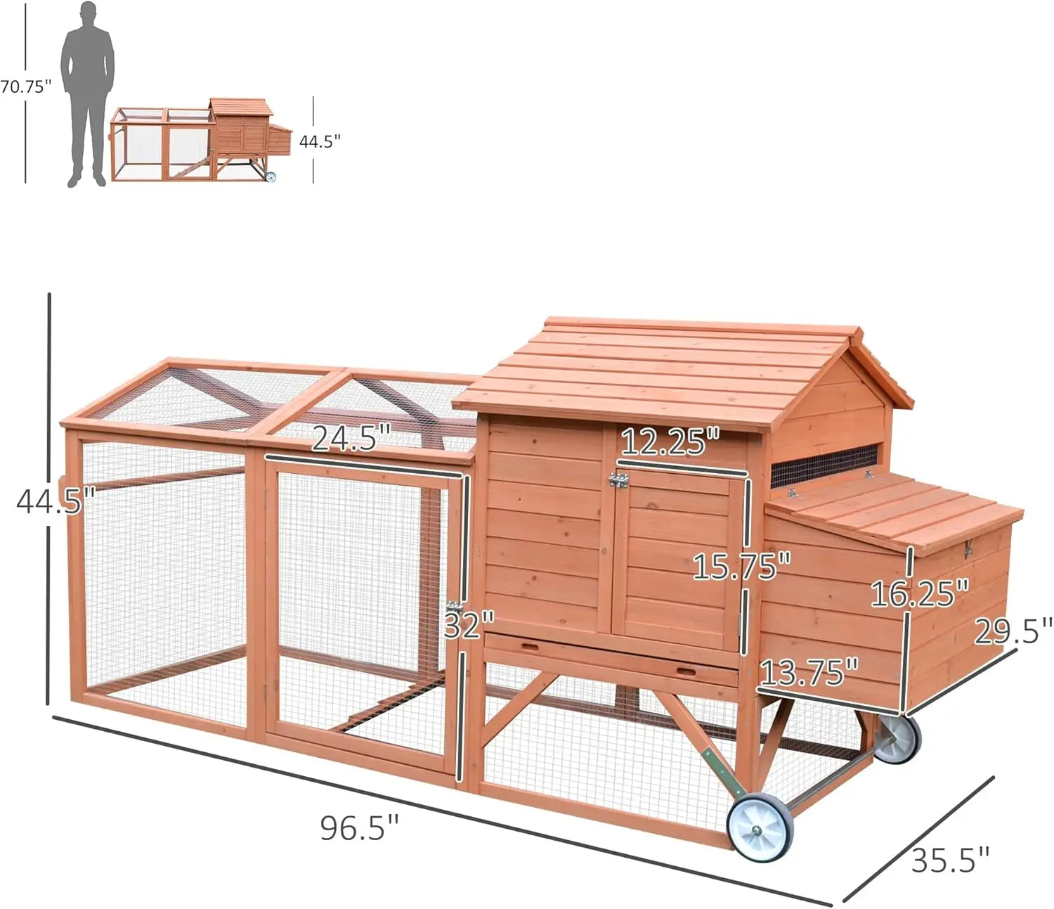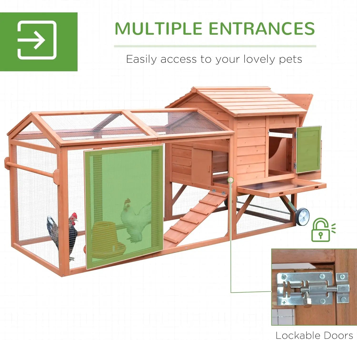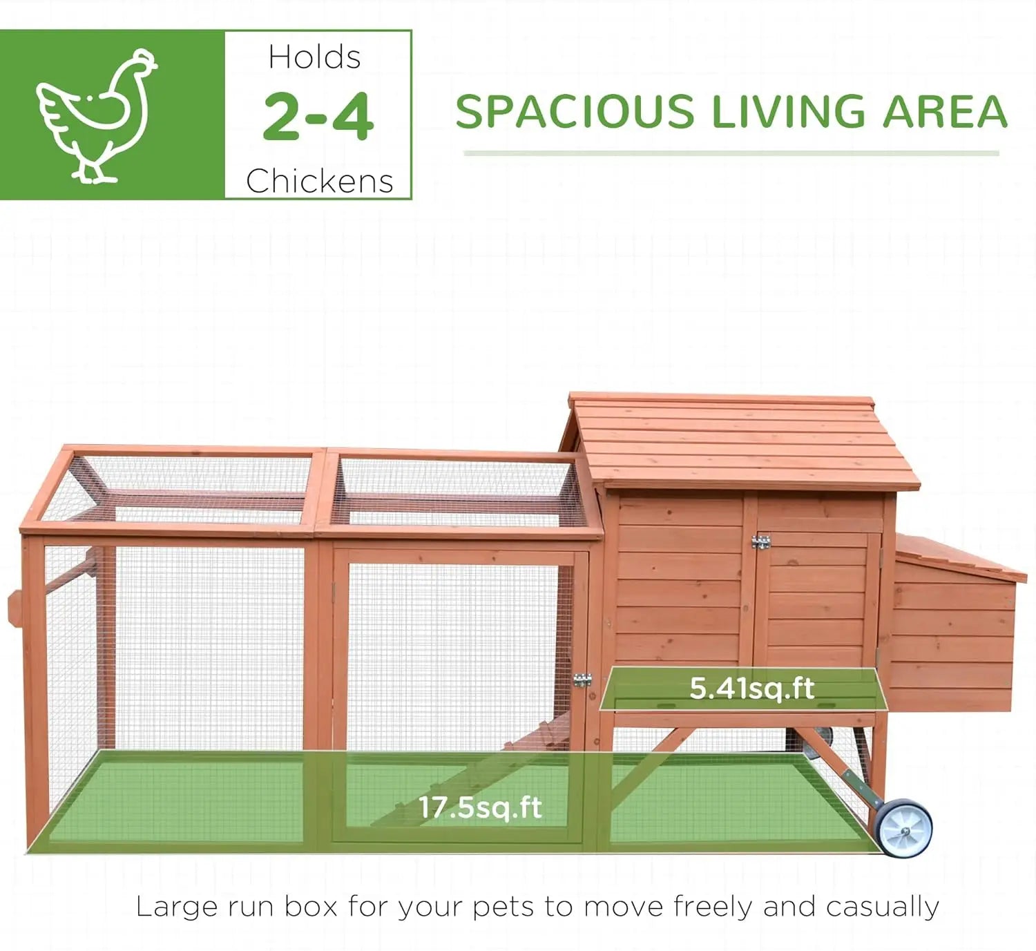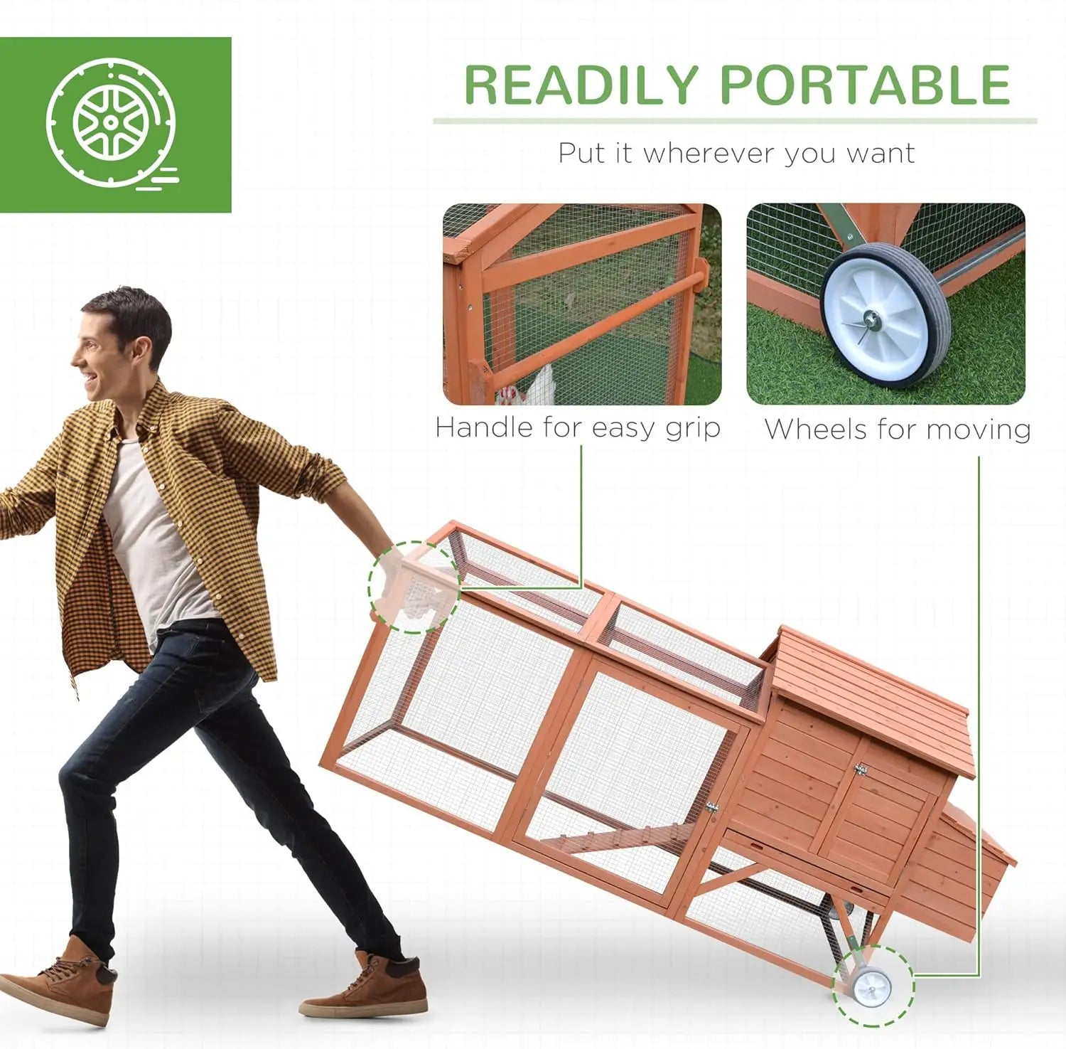 ✅READILY PORTABLE: Wheels make this backyard chicken coop easily moveable, creating a healthier environment for your chickens and your yard. Placing the coop in different locations can result in happier chickens and better quality eggs!