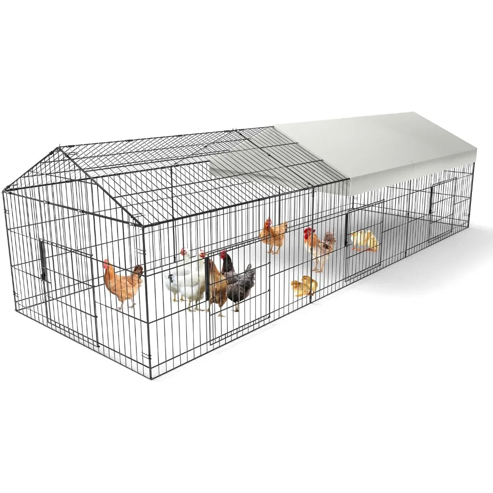 Chicken Coop 130” X 40” Chicken Run Pen with Waterproof Cover Outside Portable Chicken Cage Enclosure Tractor