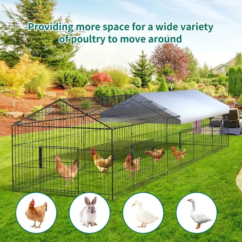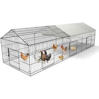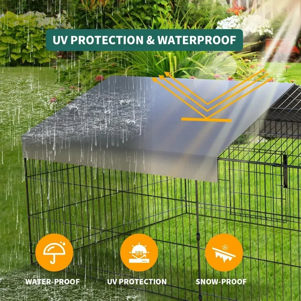 - 【Waterproof & Anti-UV Cover】The extended waterproof and UV protective cover fits perfectly into the poultry fencing, to provide your chickens with full protection from bad weather, and the roof design can effectively prevent rain, snow or debris accumulation on the roof.