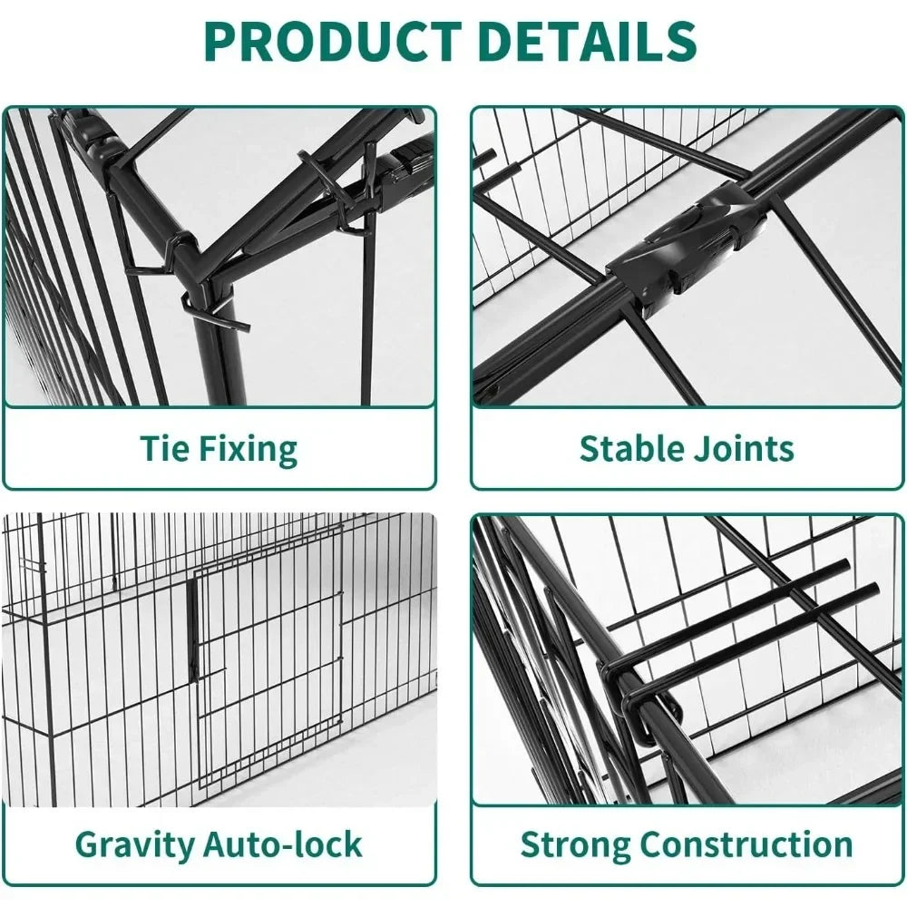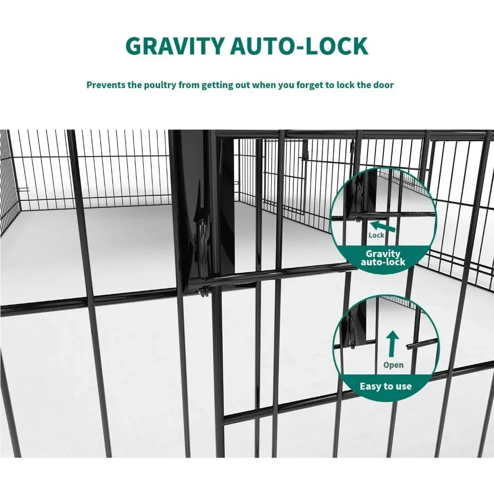 - 【Anti-rust & Stable】 Chicken coop has anti-rust coating on each wire, which can effectively extend the service life of the chicken cage and resist long-term exposure to rust corrosion and fading.The coop is equipped with ground nails that grip the ground firmly, making the chicken run more stable and sturdy.