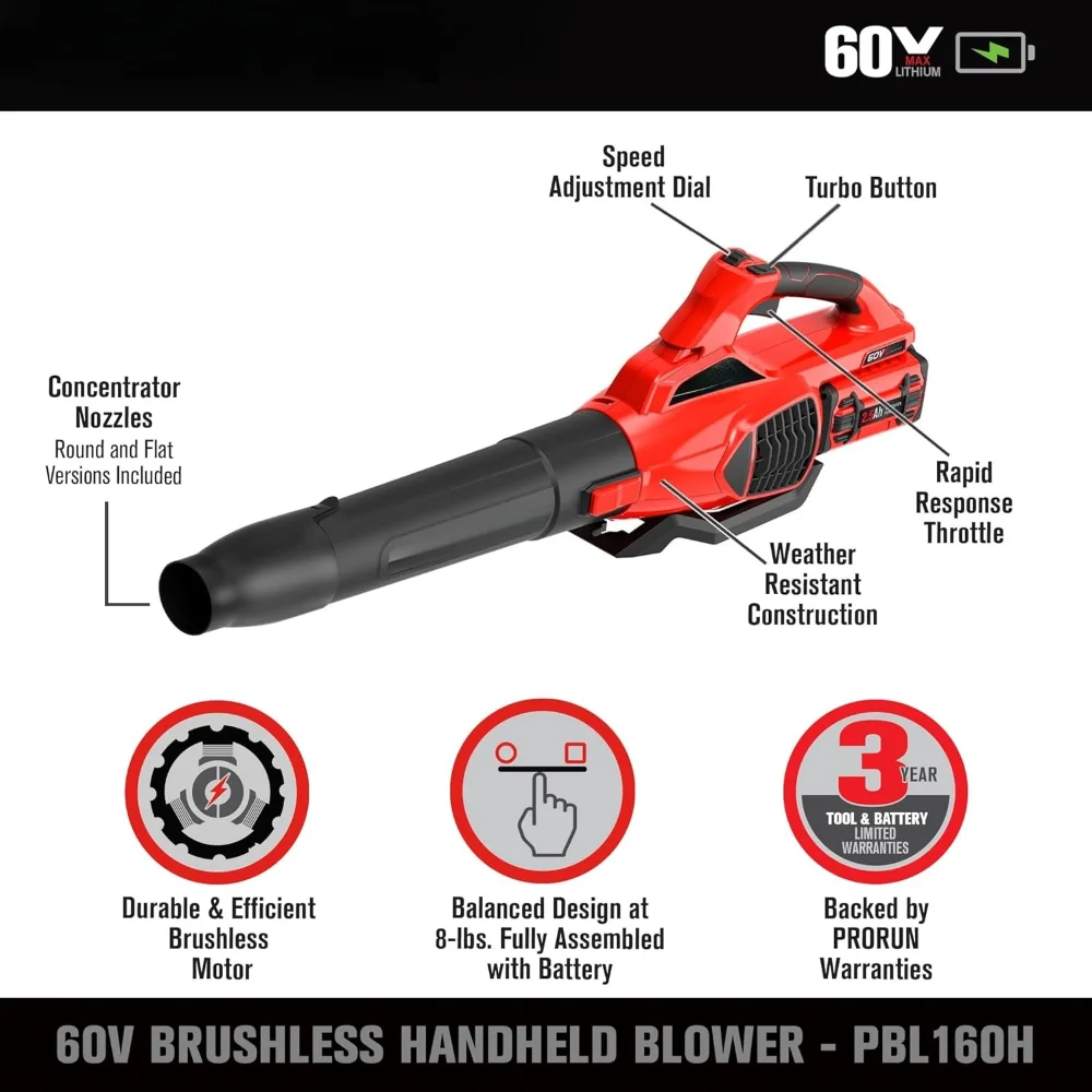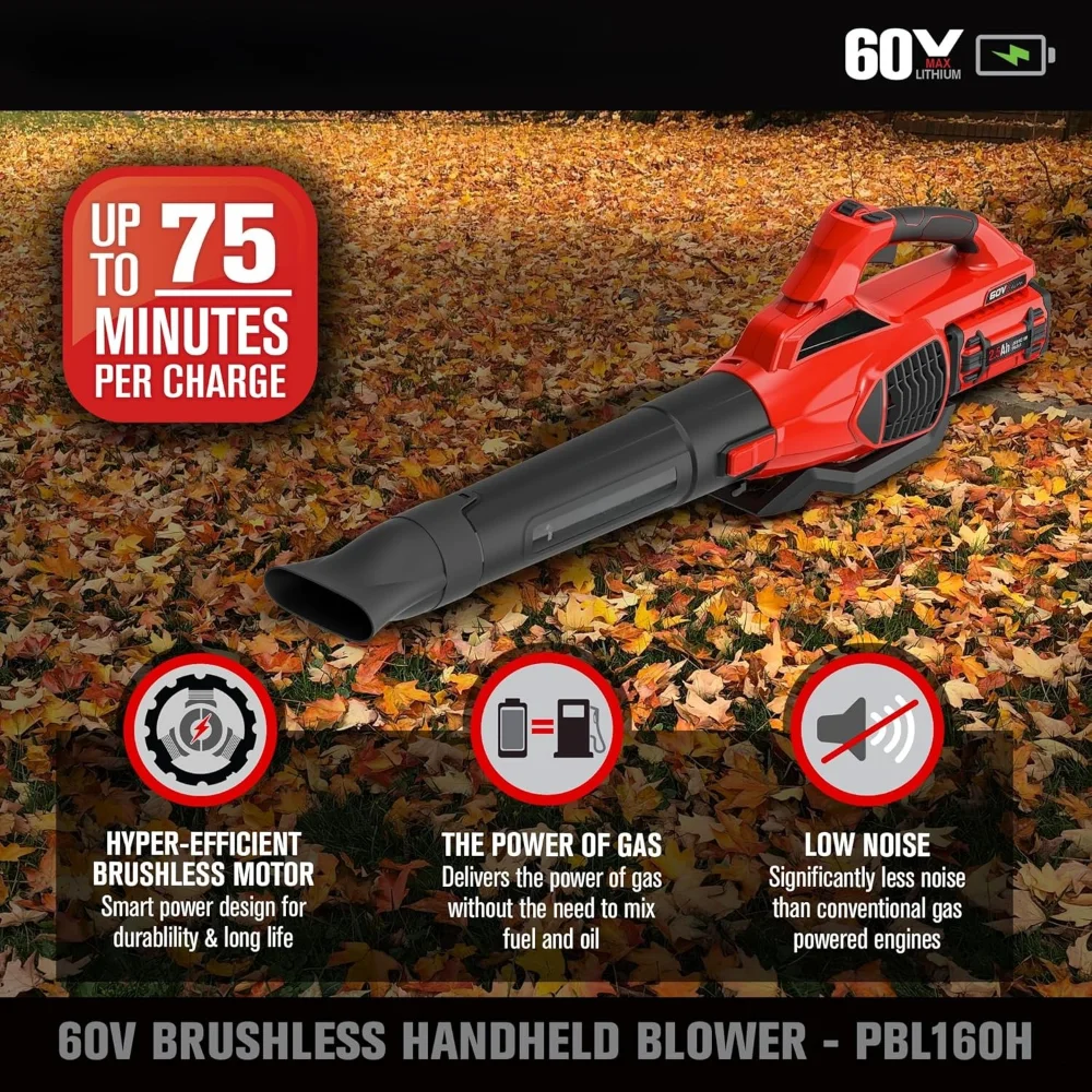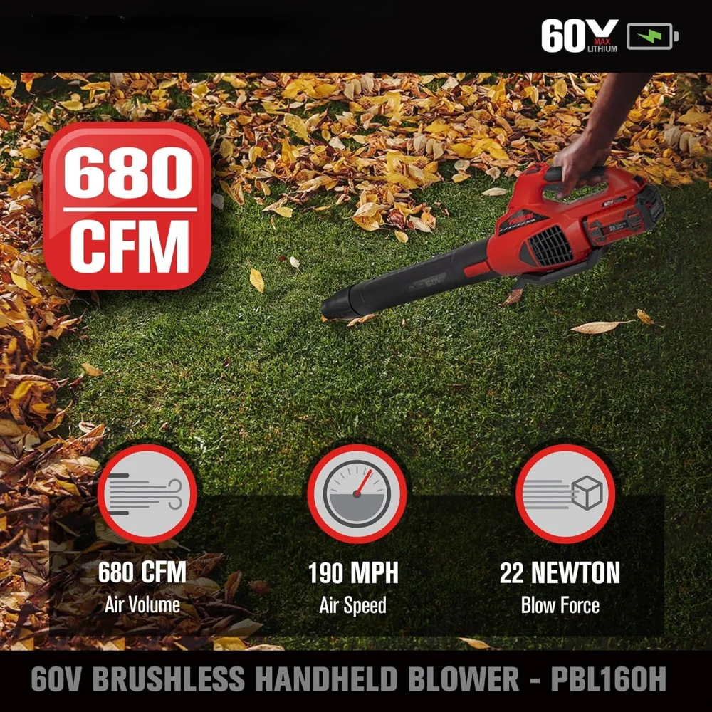 BUY NOW PAY LATER-FREE SHIPPING 60V 680 CFM 190 MPH Brushless Cordless Handheld Leaf Blower with 2.5 Ah Battery and Charger PBL160H