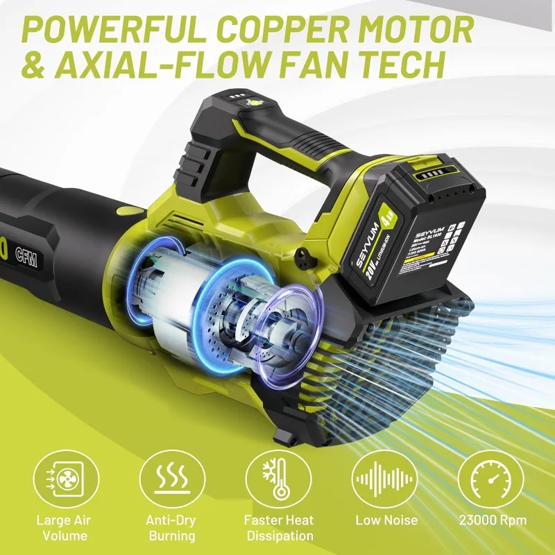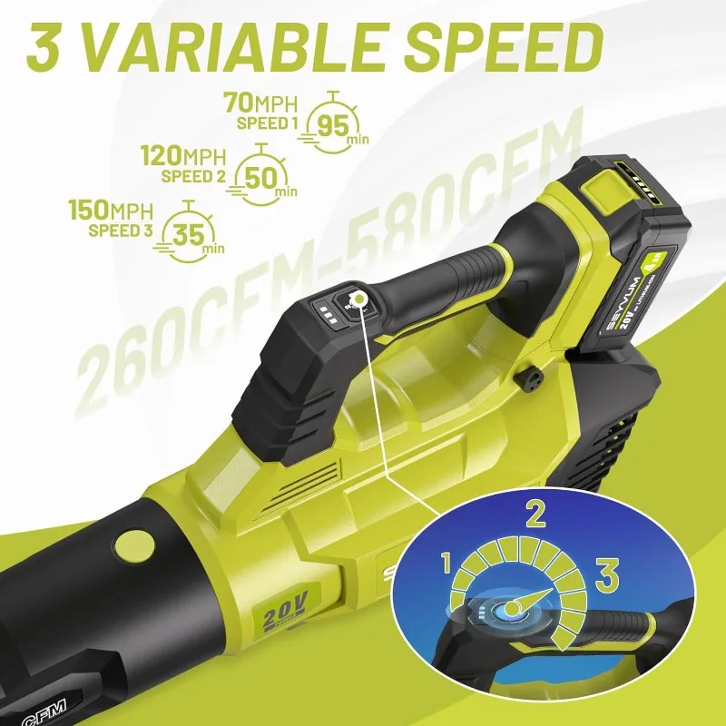 BUY NOW PAY LATER-FREE SHIPPING SEYVUM Leaf Blower - 580CFM 20V Leaf Blower Cordless with 2 X 4.0Ah Battery & Charger, 3-Speed Dial Electric Blower Handheld