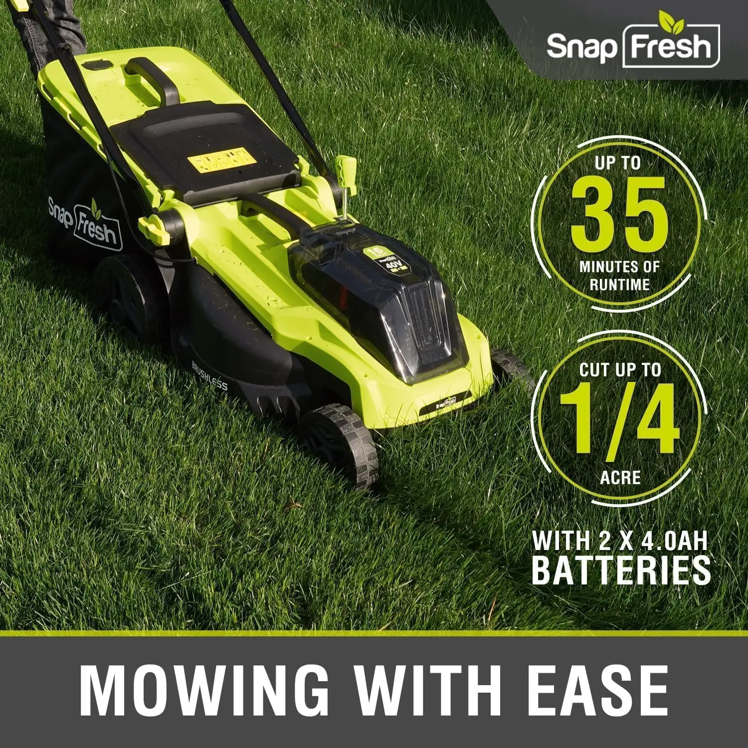 BUY NOW PAY LATER -FREE SHIPPING Snap Fresh Electric Lawn Mower Cordless-40V (2 x 20V) 16” Brushless Push Lawn Mower with 4.0Ah Battery x 2& Fast Charger Included