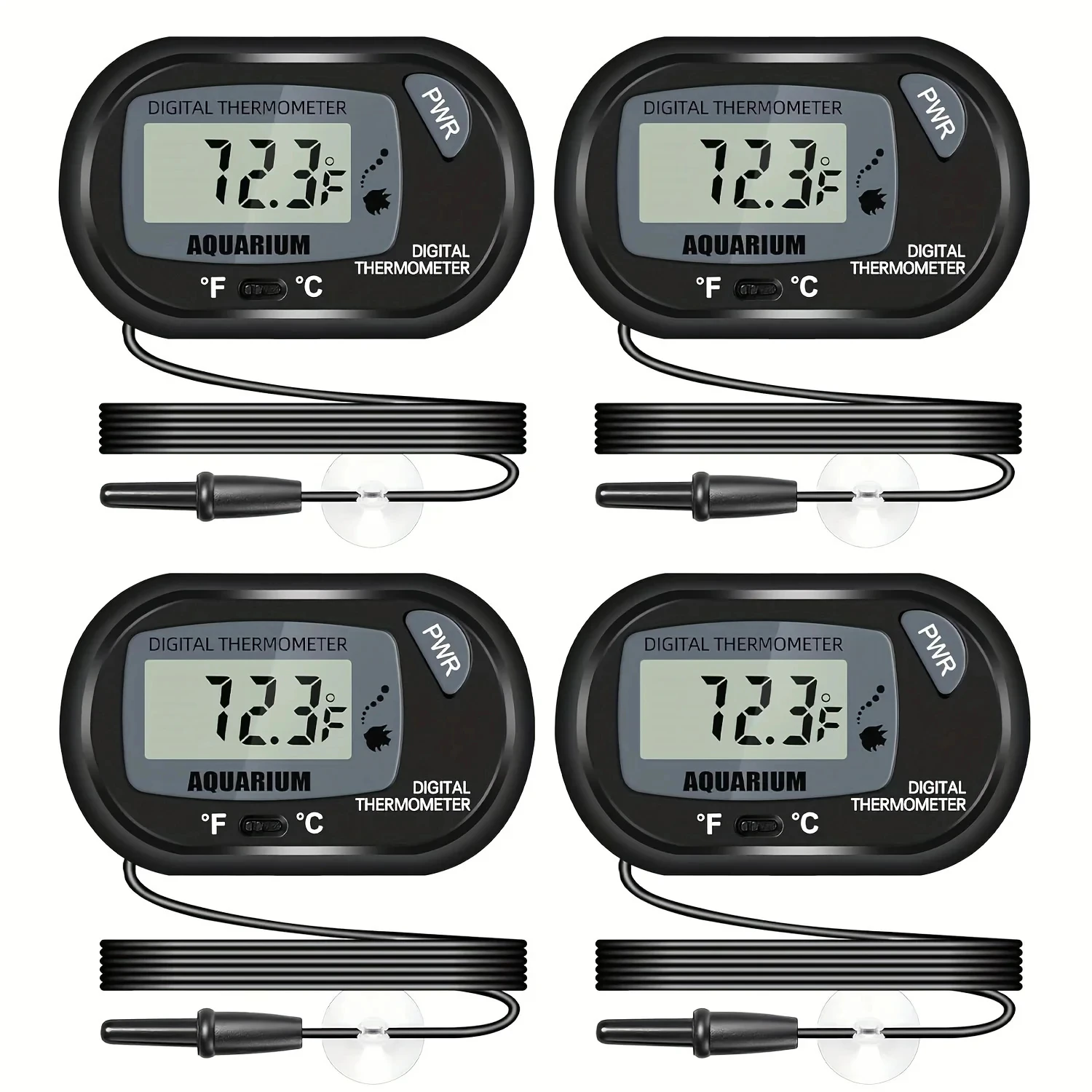 2/4/8Pcs LCD Digital Aquarium Thermometer, Fish Tank Thermometer With Water-Resistant Sensor Probe And Suction Cup For Reptile