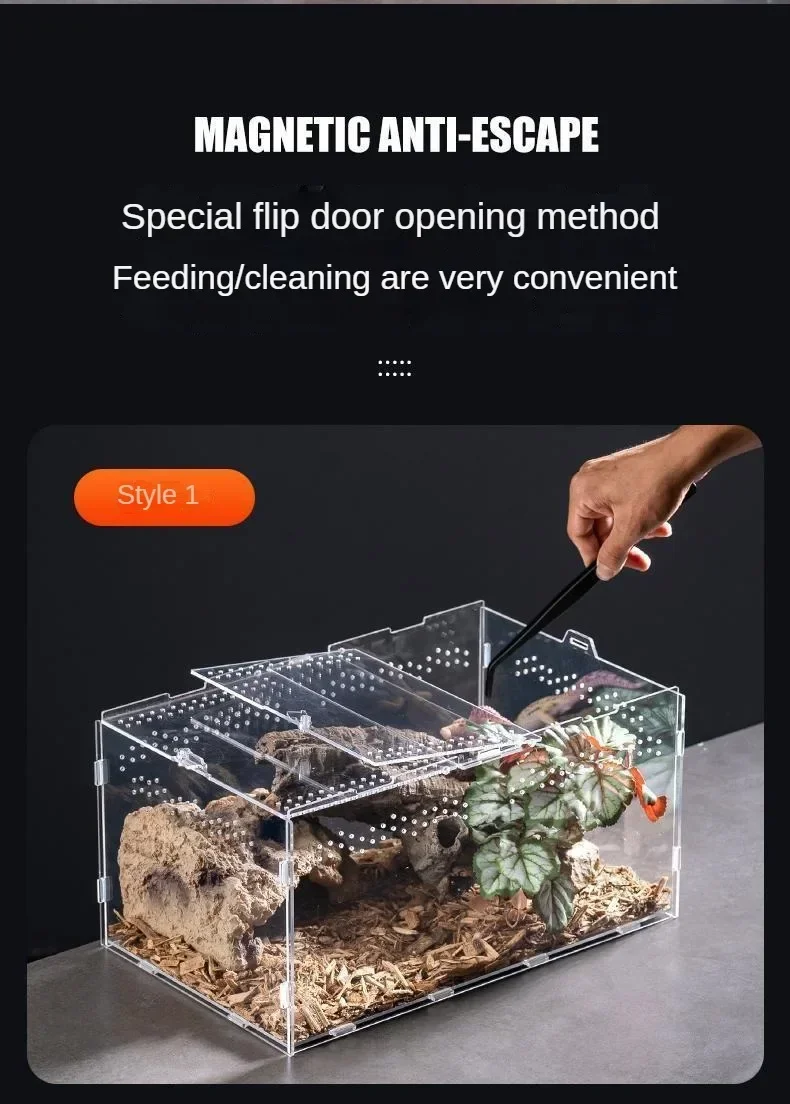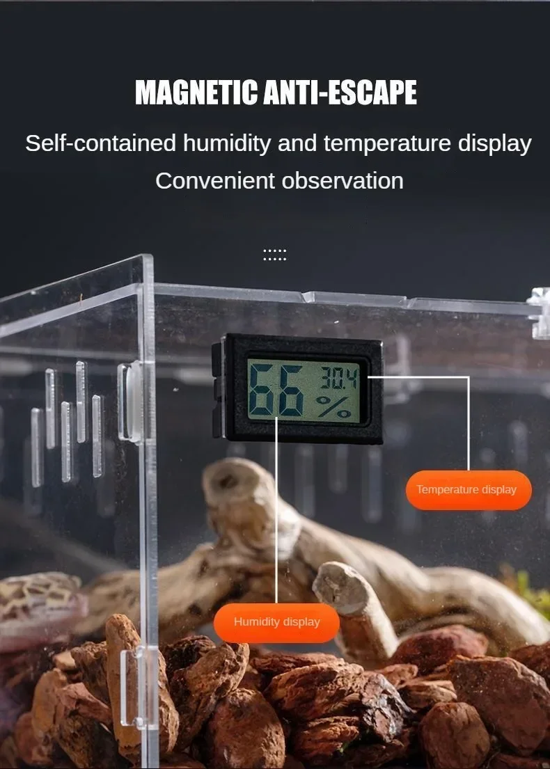 【FOR ANIMALS】Acrylic reptile terrarium has vents, enough vents to ensure that animals will not suffocate when staying inside, which can ventilate and dissipate heat and provide a good growth environment for animals.