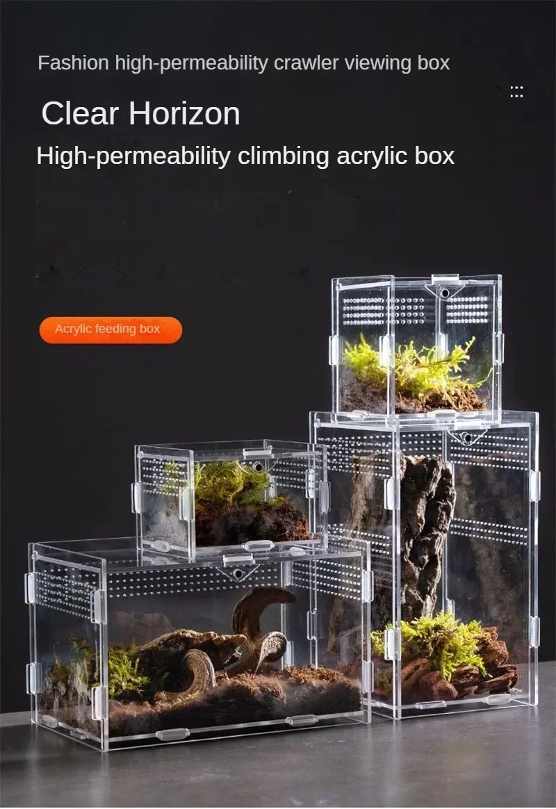Reptile Feeding Box Acrylic Display Receptacle 95% High Light Transmission Tarantula Enclosure Scorpion Bearded Dragon Habitat