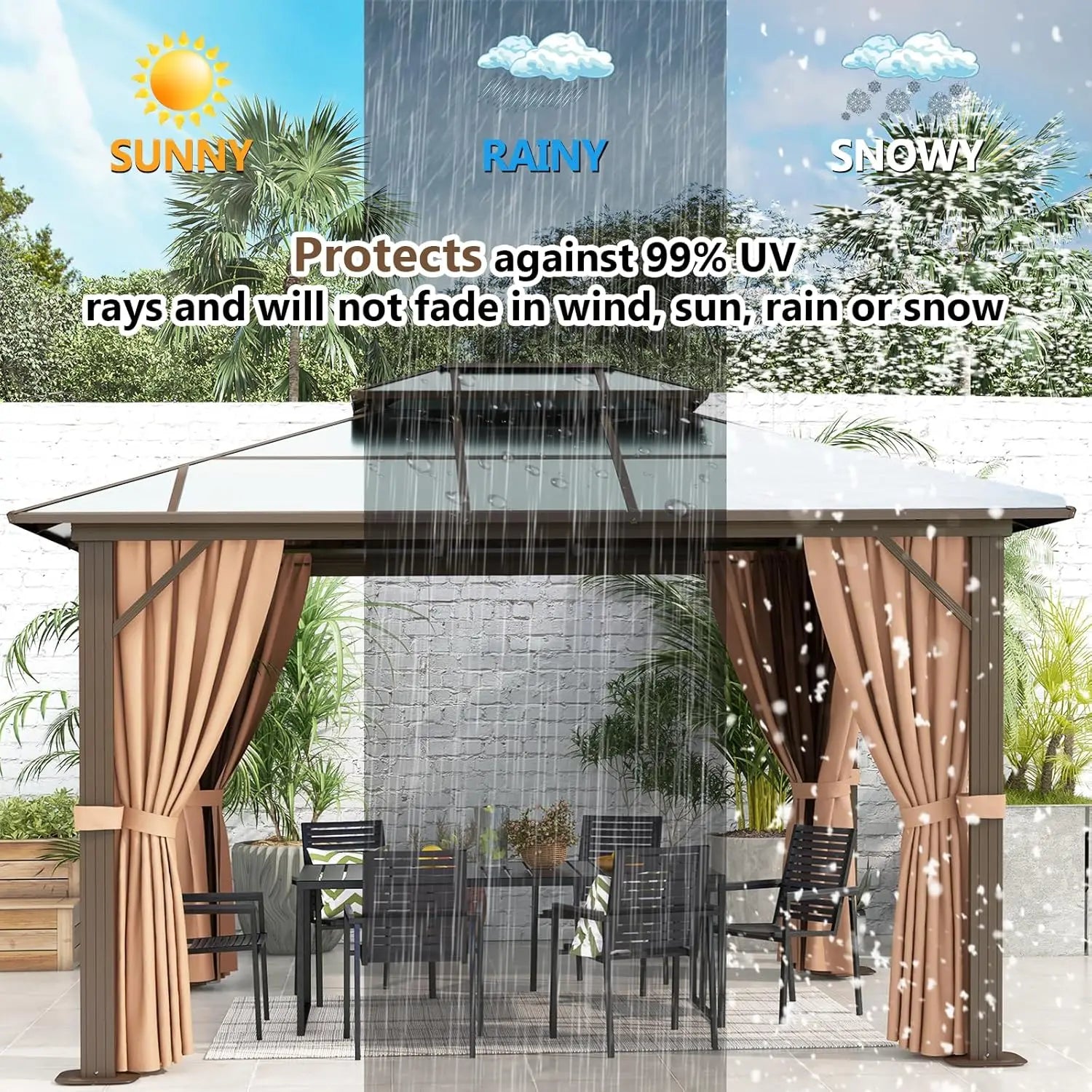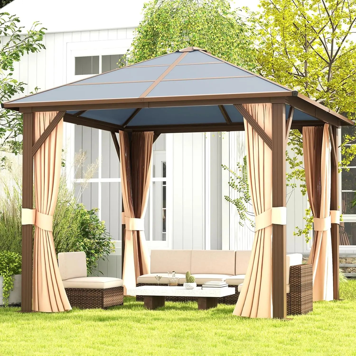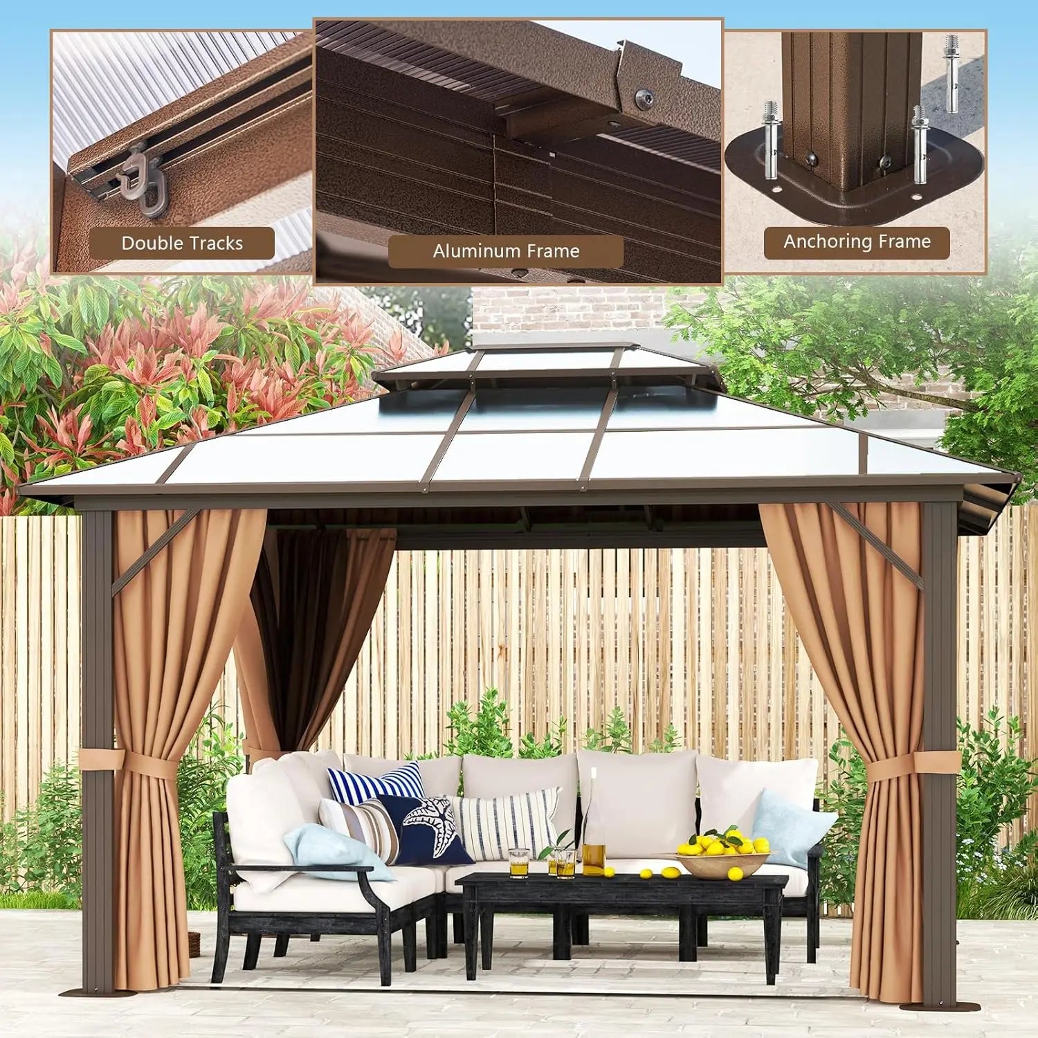 10'x12' Hardtop Gazebo with Netting and Curtains, Outdoor Gazebo with Aluminum Frame, Double Roof Canopy Party Tent for Patio