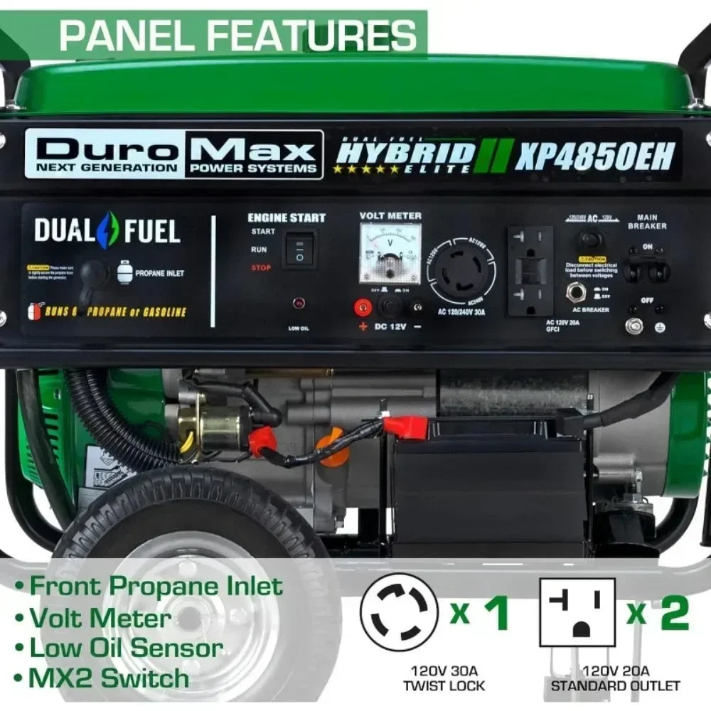 DuroMax XP4850EH Generator-4850 Watt Gas or Propane Powered-Electric Start-Camping & RV Ready, 50 State Approved Dual Fuel Portable Generator, Green