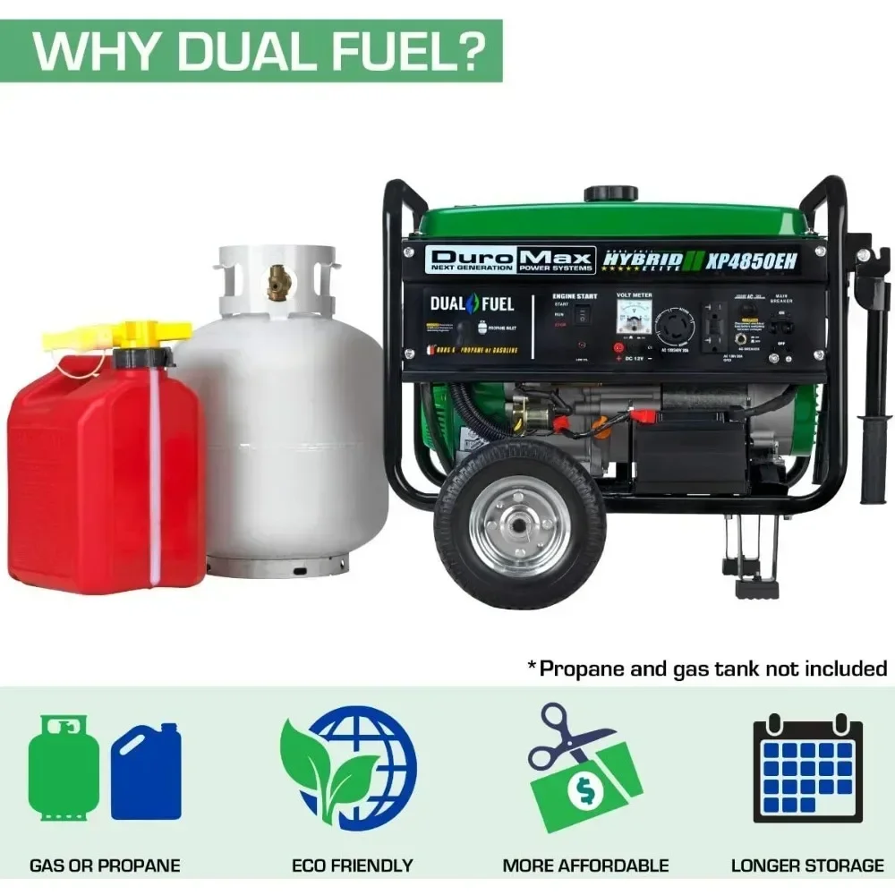 DuroMax XP4850EH Generator-4850 Watt Gas or Propane Powered-Electric Start-Camping & RV Ready, 50 State Approved Dual Fuel Portable Generator, Green