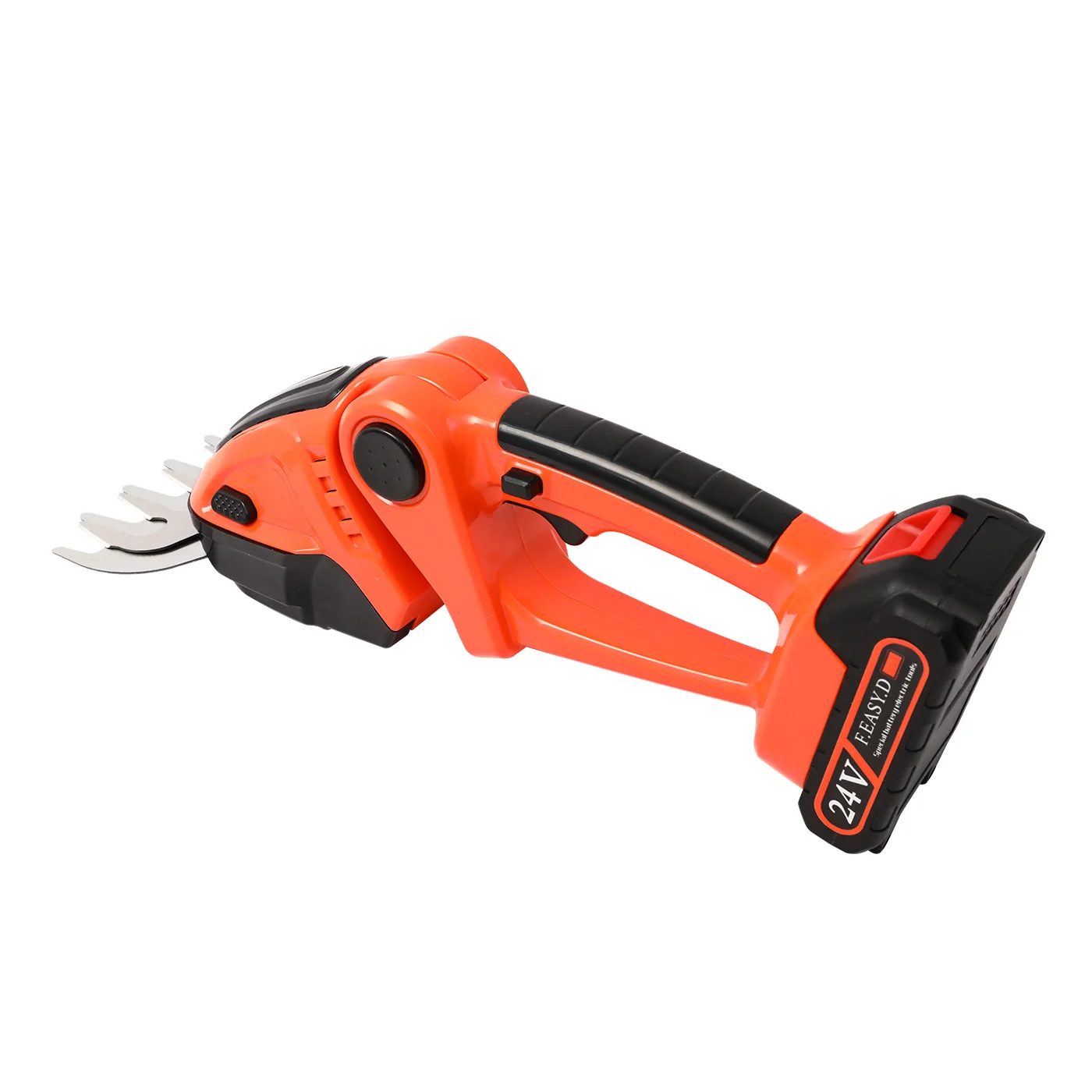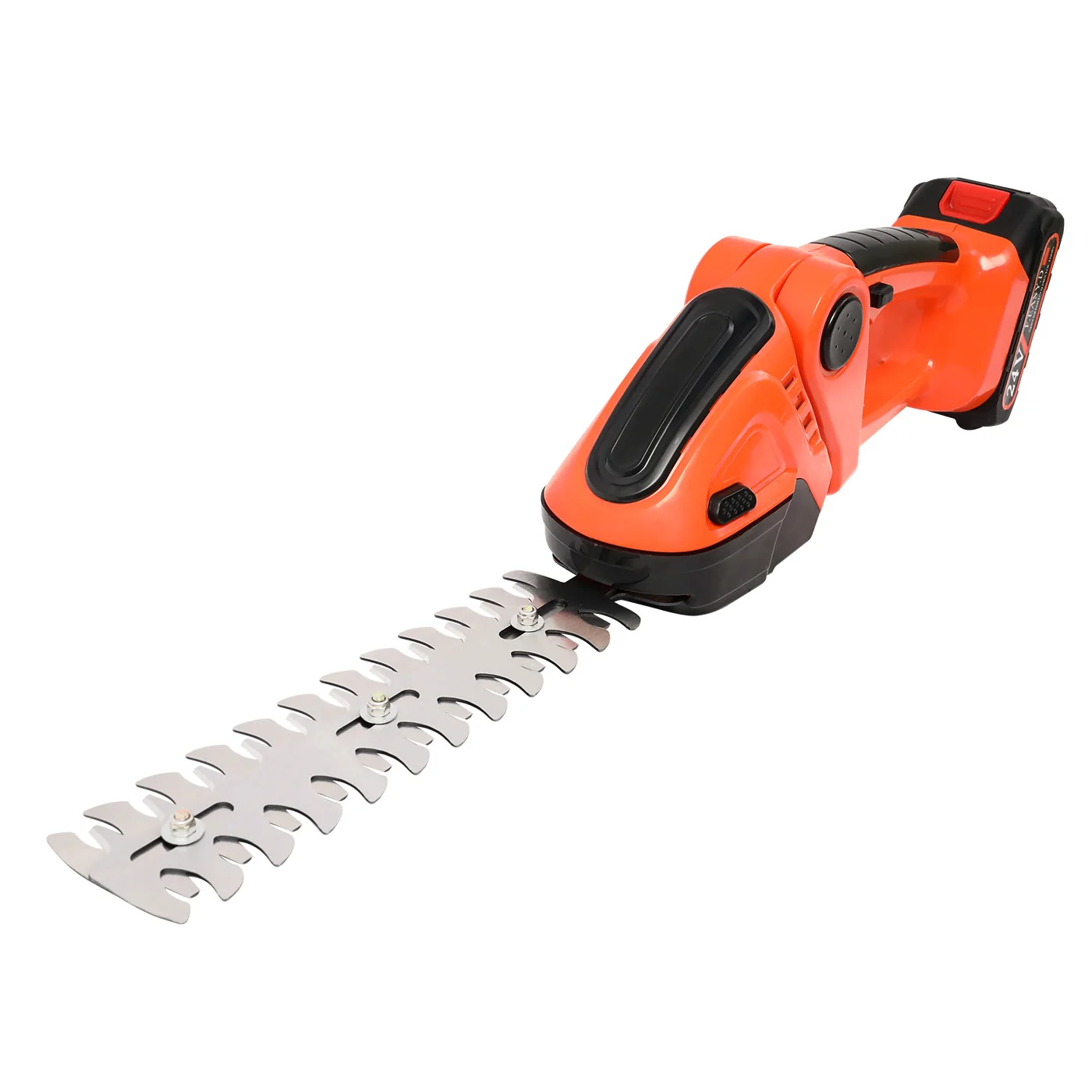 Handheld 2-in-1 Hedge Trimmer, 15,000 RPM, 24V Battery-Powered Cordless Grass Cutter with Two Batteries and Charger for Garden and Lawn Maintenance, Green/ Orange / Yellow