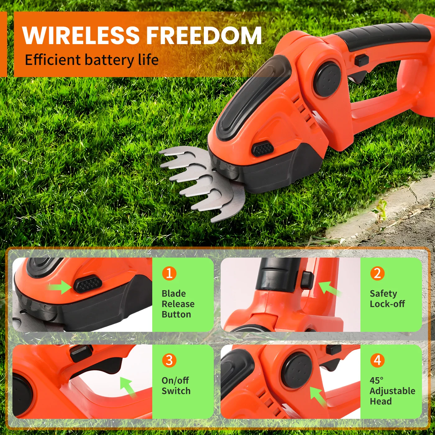 BUY NOW PAY LATER -FREE SHIPPING 390W Handheld 2-in-1 Hedge Trimmer 15000 RPM 24V Battery-Powered Cordless Grass Cutter with Two Batteries and Charger for Garde