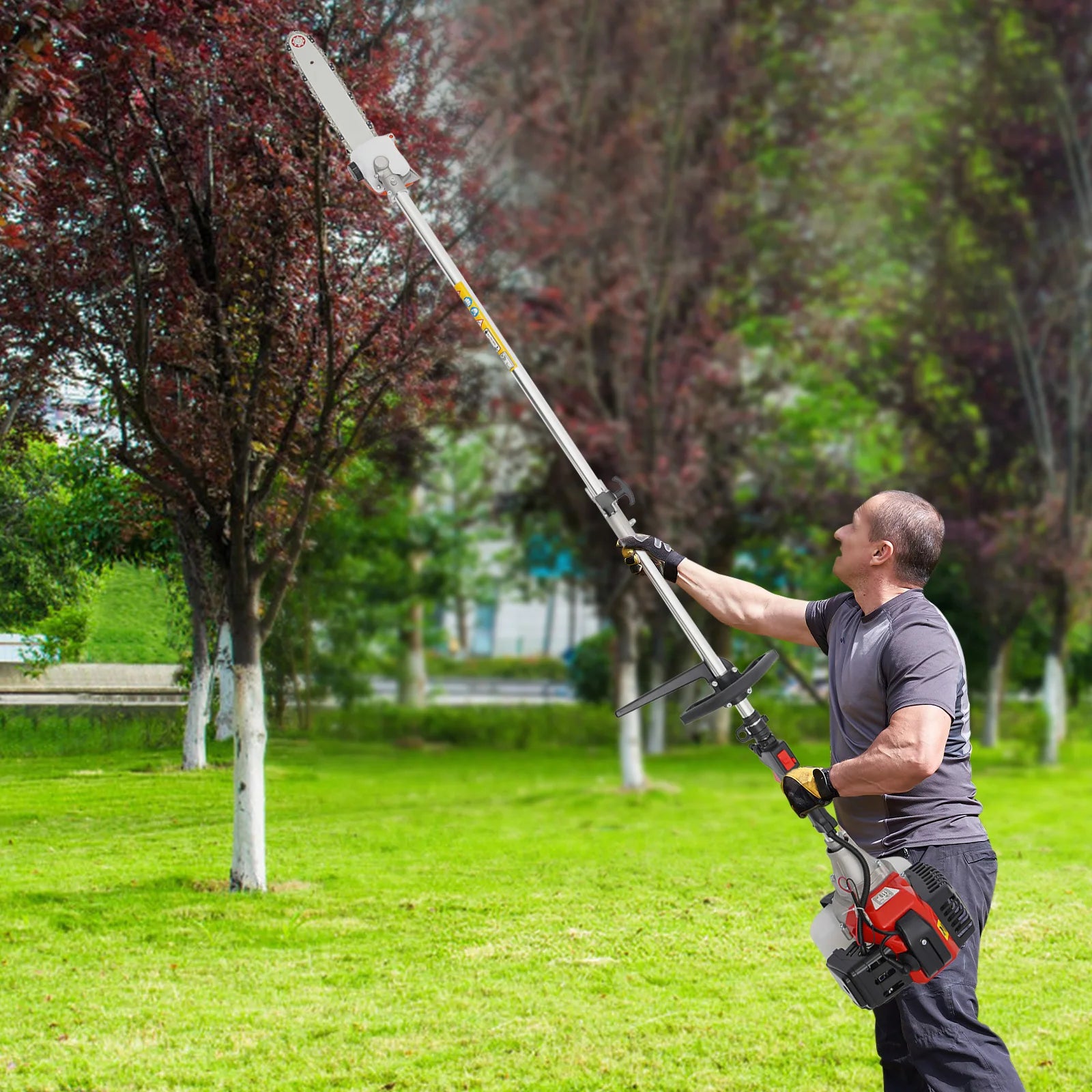 Powerful Engine: With a powerful 1.7kw 52cc engine, it can provide you with more power (6500-8500r/Min) to mow many kinds of lawn or tree branches faster and more efficiently.