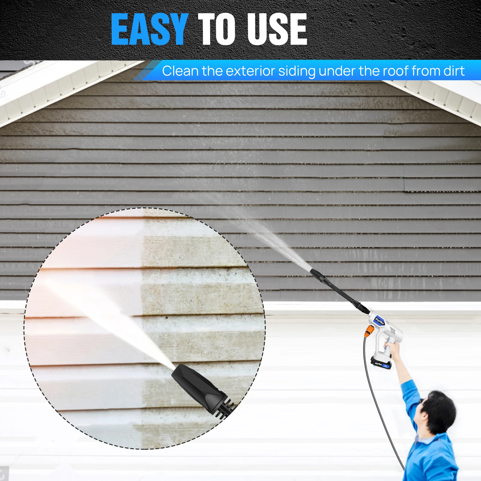 Powerful Motor: Cordless pressure washer portable equipped with a pure copper motor. 1.2MPA working pressure, the flow rate is 3L/min. It provides more efficient cleaning power, allowing you to clean all your outdoor spaces and gear quickly and easily.
