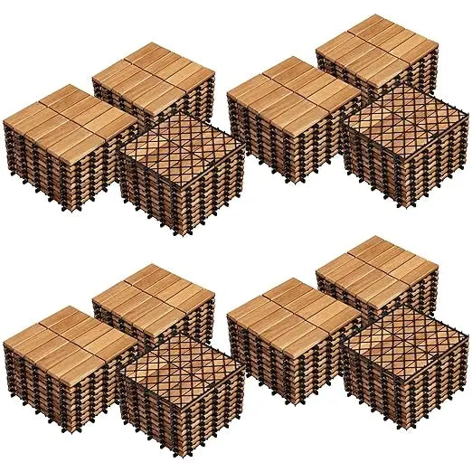 108pcs Acacia Wood,Interlocking Deck Tiles with Non-Slip Surface , Easy Snap Waterproof Flooring Tiles Indoor Outdoor