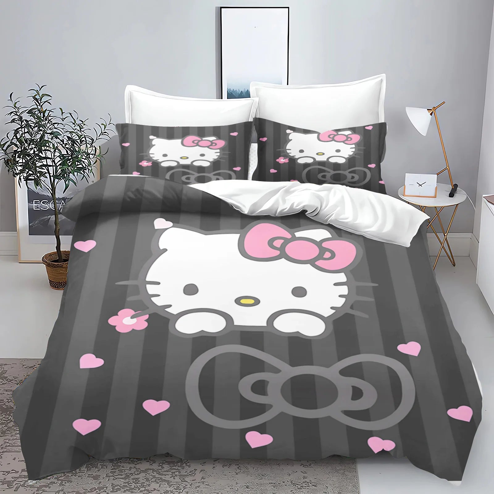 3PCS MINISO HelloKitty Duvet Cover Twin Full King Size Queen Bedding Set, 3d Printing Cartoon for Boys Child Teens Girls