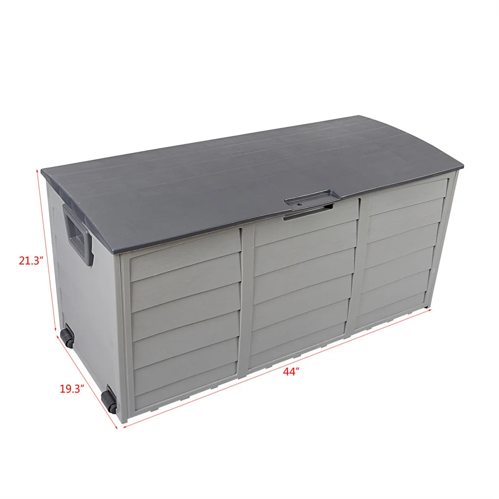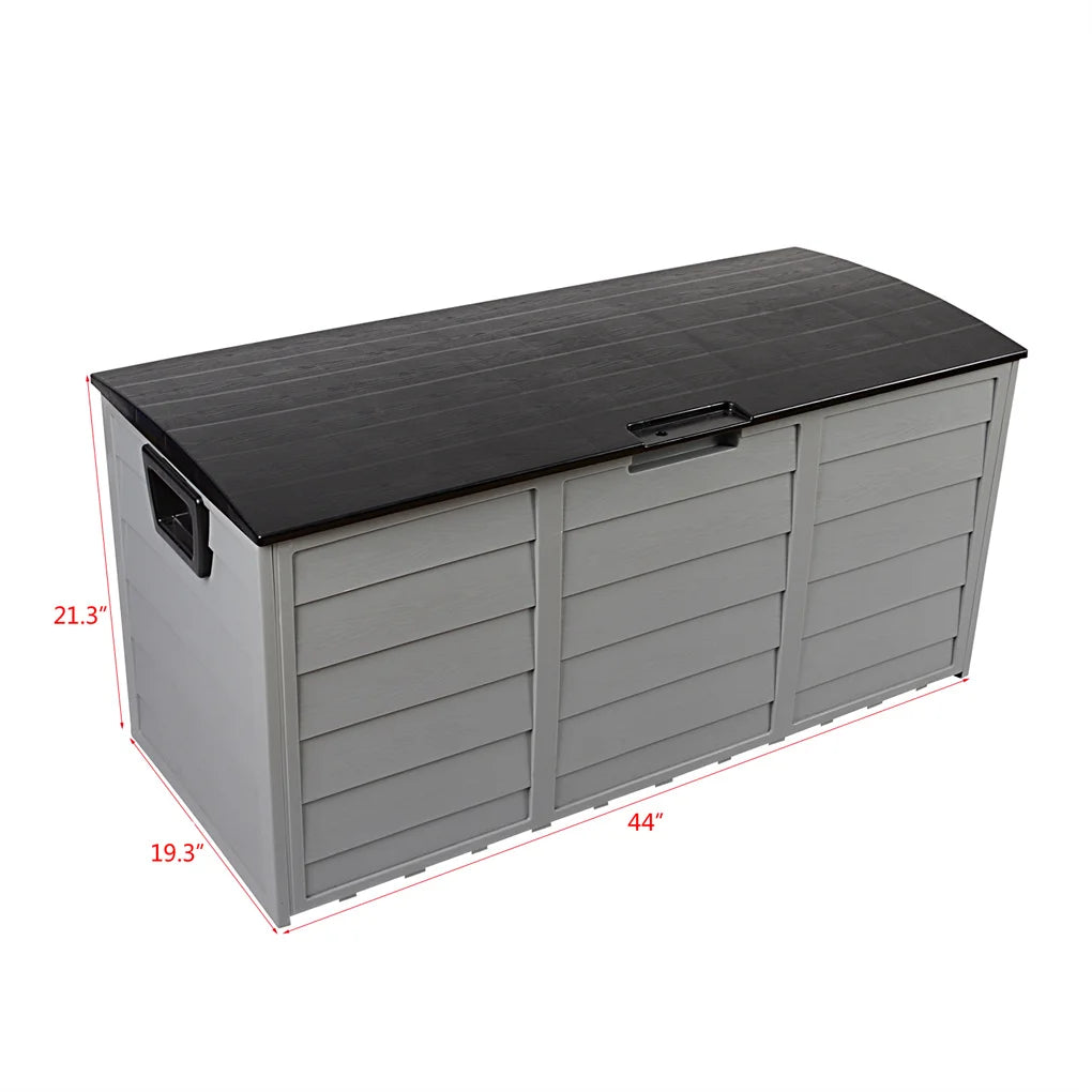 75gal Outdoor Garden Plastic Storage Deck Box Chest Tools Cushions Toys Lockable Seat