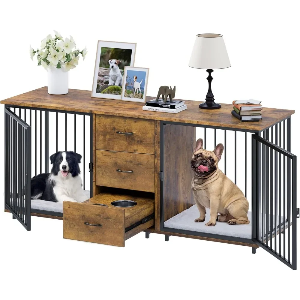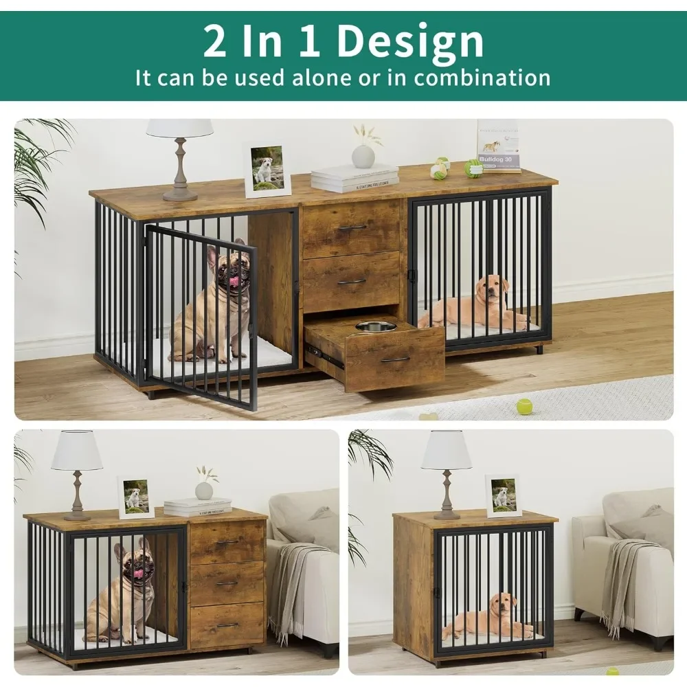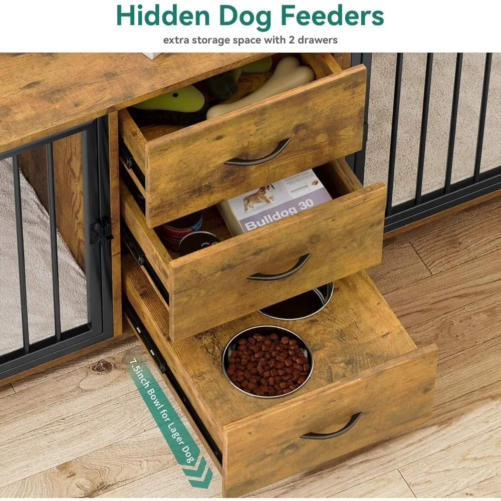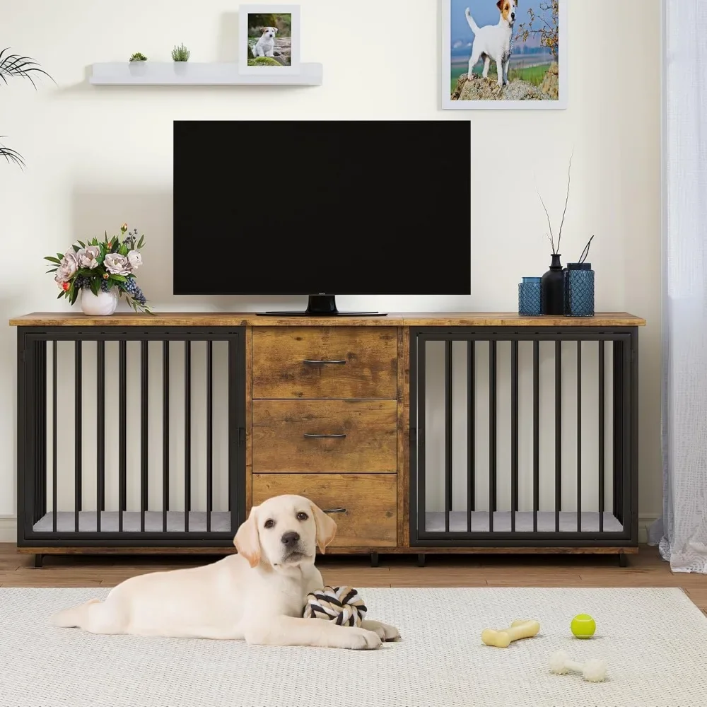 - Dog Crate Furniture TV Stand: The dog crate furniture comes with 2 large drawers to conveniently store dog food; Can be used as TV cabinets and side tables while the wide top accommodates various items or decorations to tidy up your home and meeting the needs of you and your dog