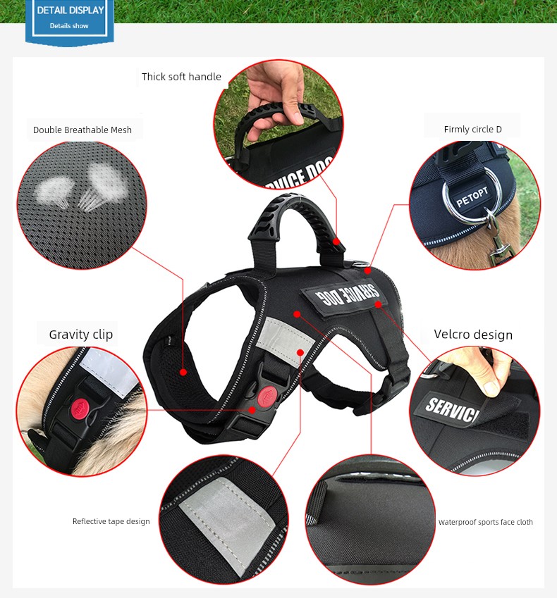 Petopt Dog Explosion-Proof Chest Back Golden Retriever/Border Collie Corgi Vest Hand Holding Rope Adjustable Medium and Large Chest Back