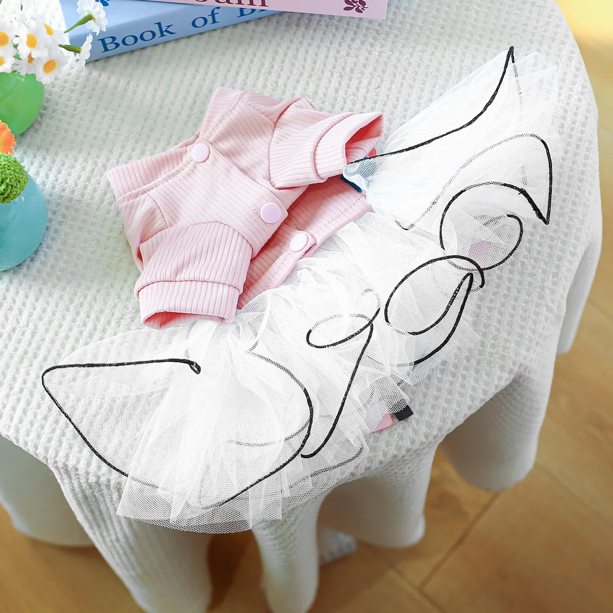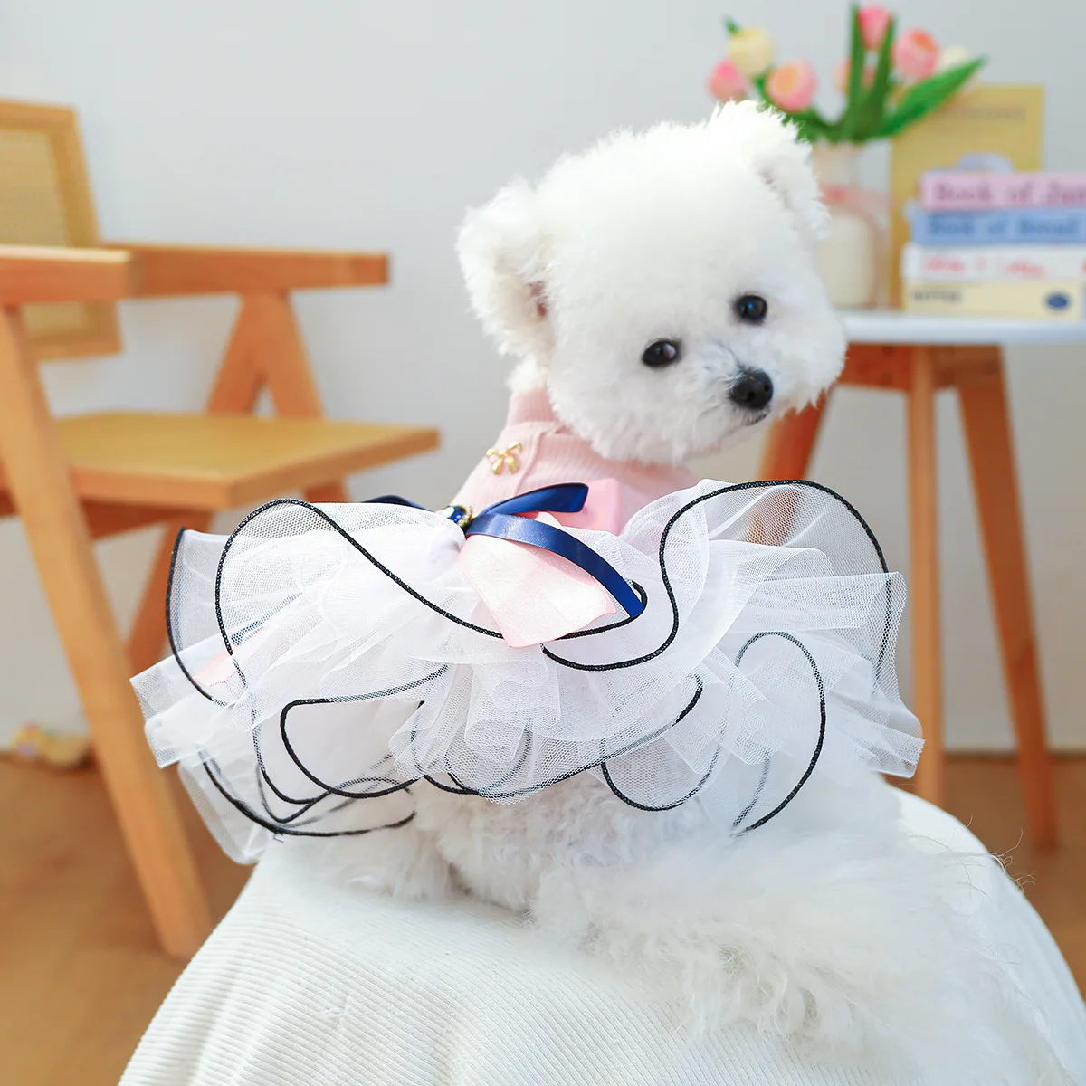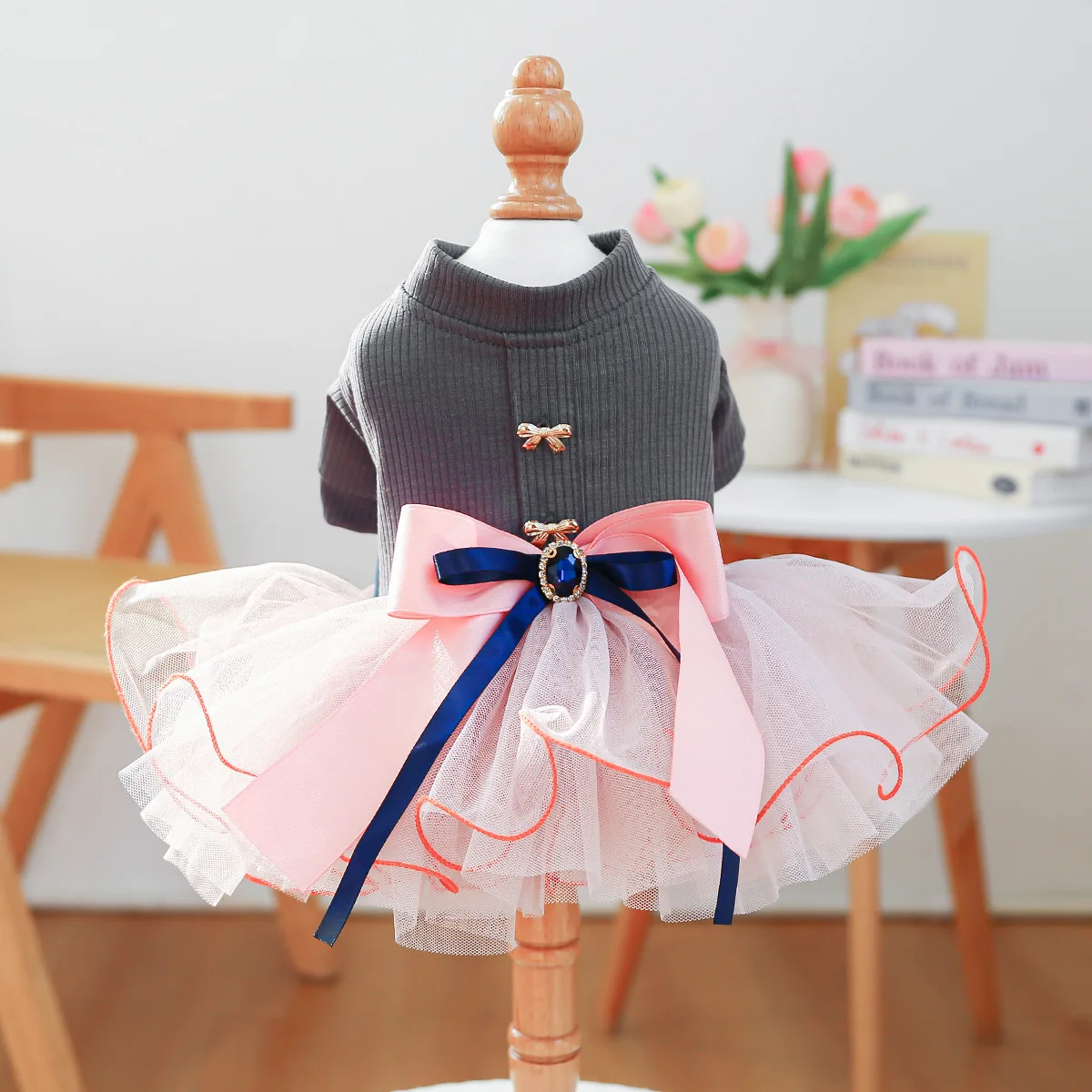 Bling Dog Luxury Clothing Pink Gray Bow Puppy Fashion 2025 New Sping Autumn Pet Girl Dress Cat Accessories Princess Outfit Item