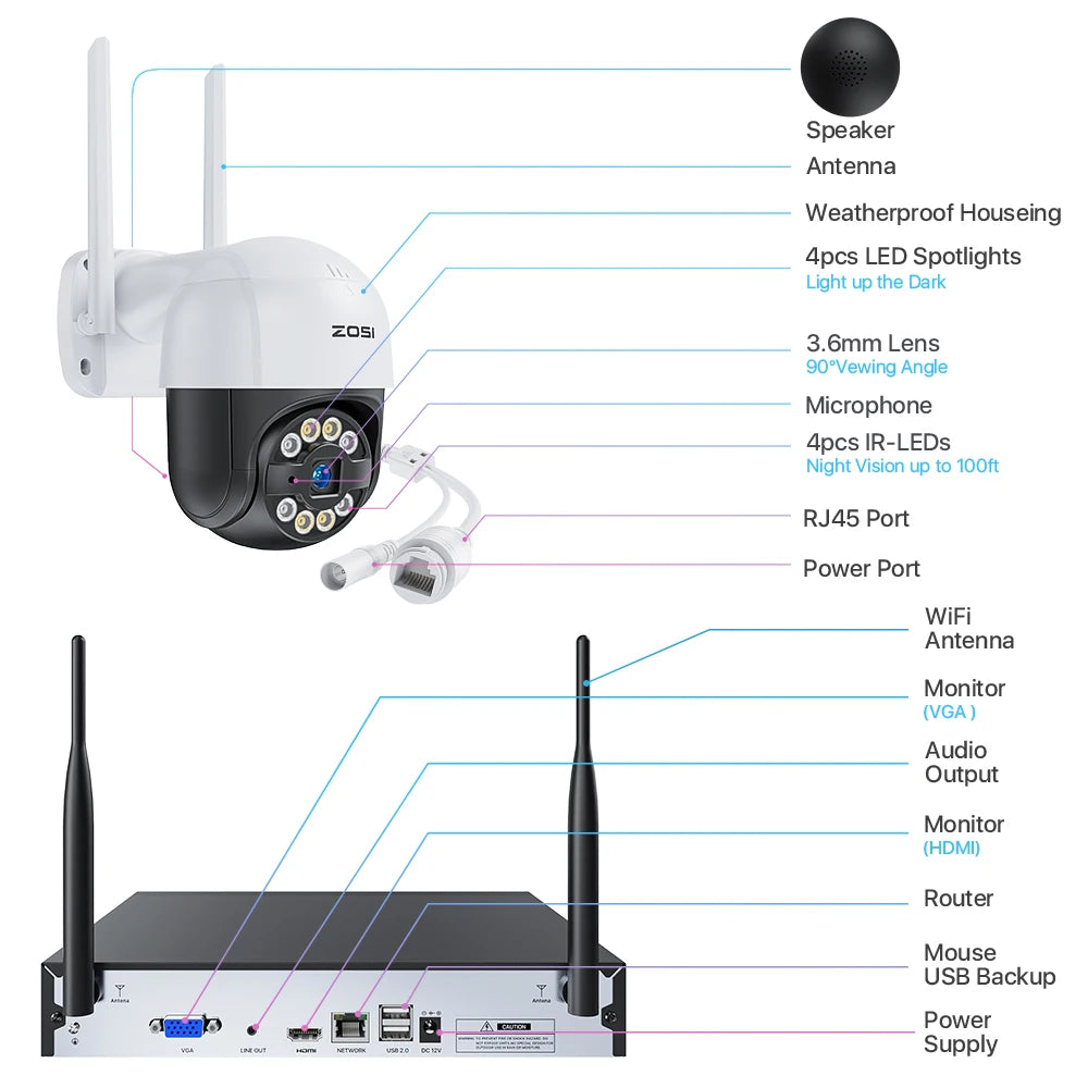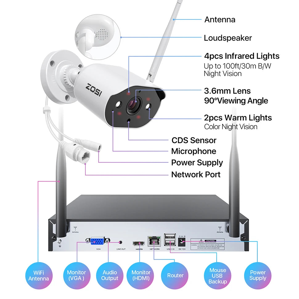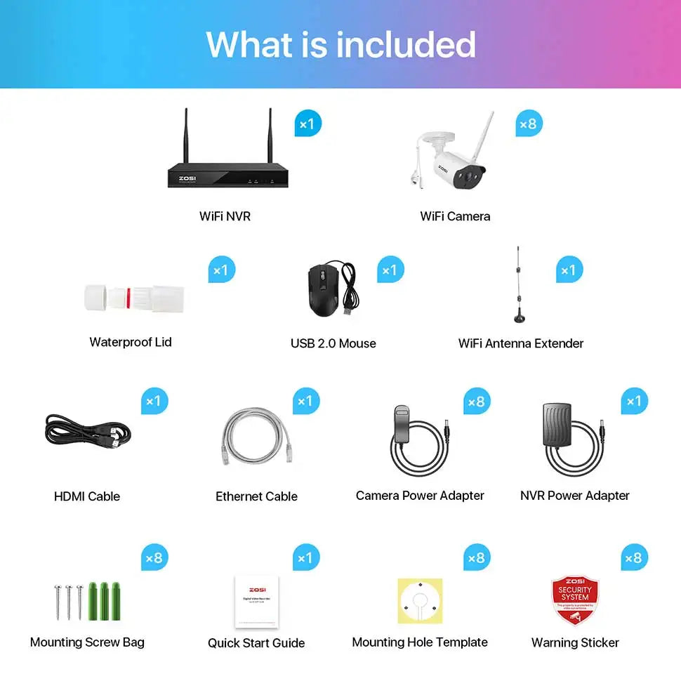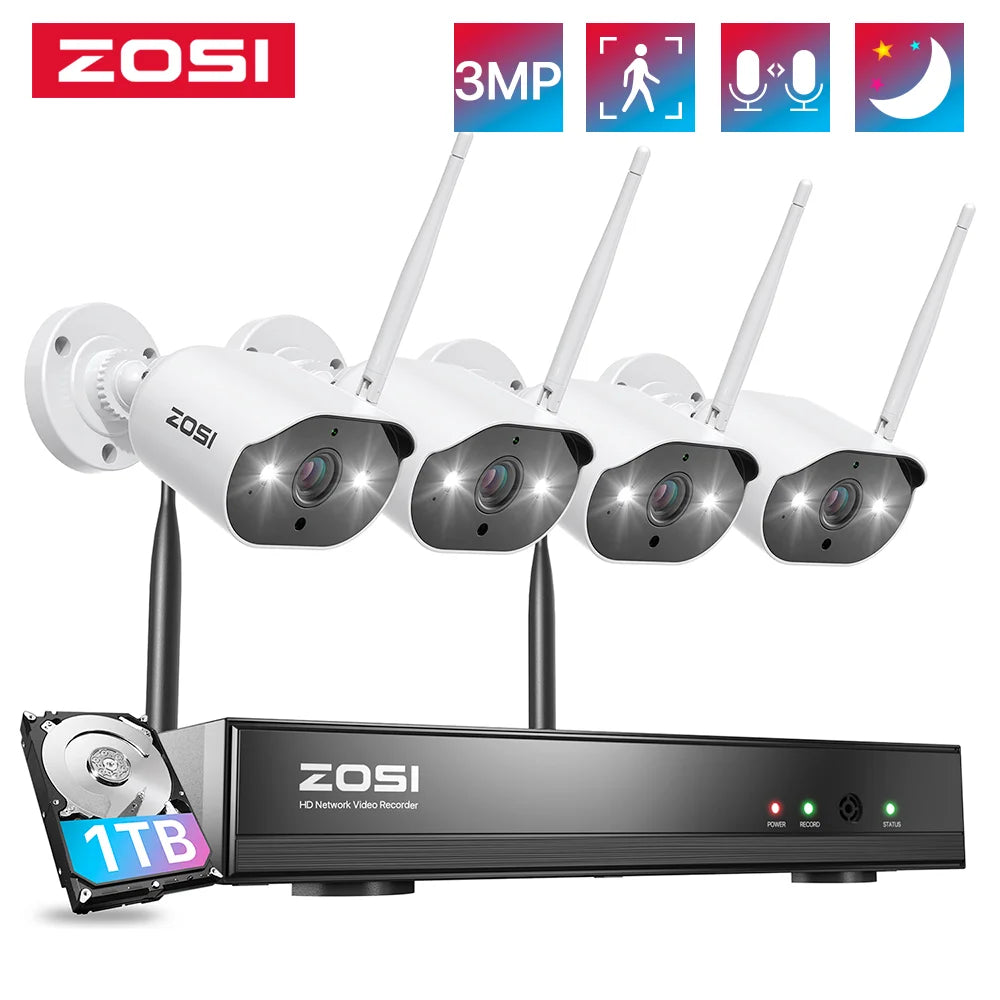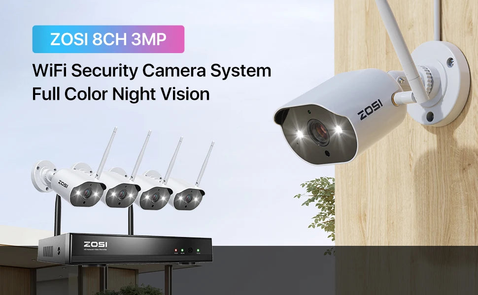 FREE USA SHIPPING! ZOSI 2K Wireless Home Security Camera System 2K H.265+ 8CH NVR Recorder 3MP WiFi Surveillance IP Cameras Indoor Outdoor