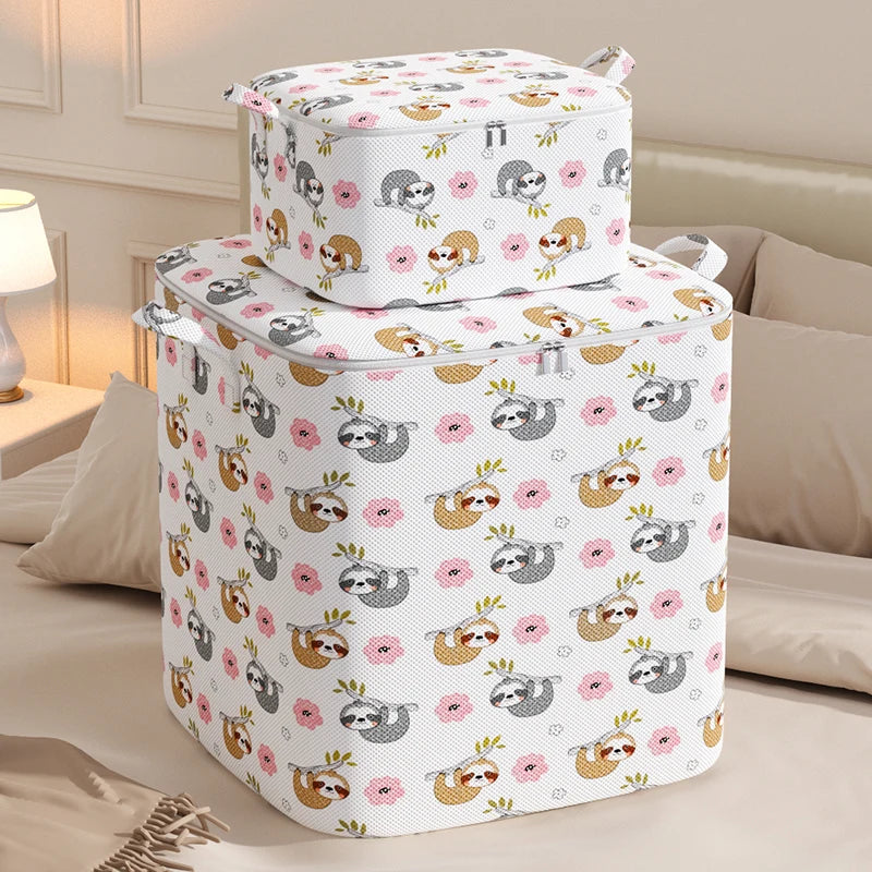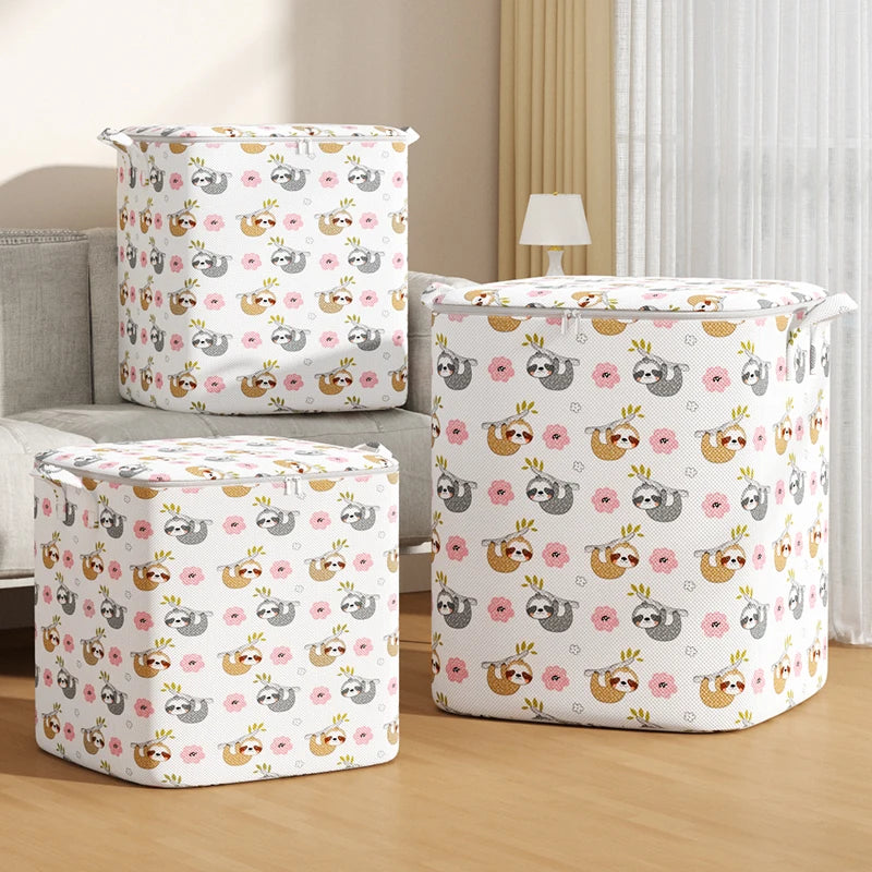 1Pc Portable Large Capacity Quilt Storage Bag Cute Bear Plaid Pattern Clothes Organizer Perfect Home Moving Storage Bag