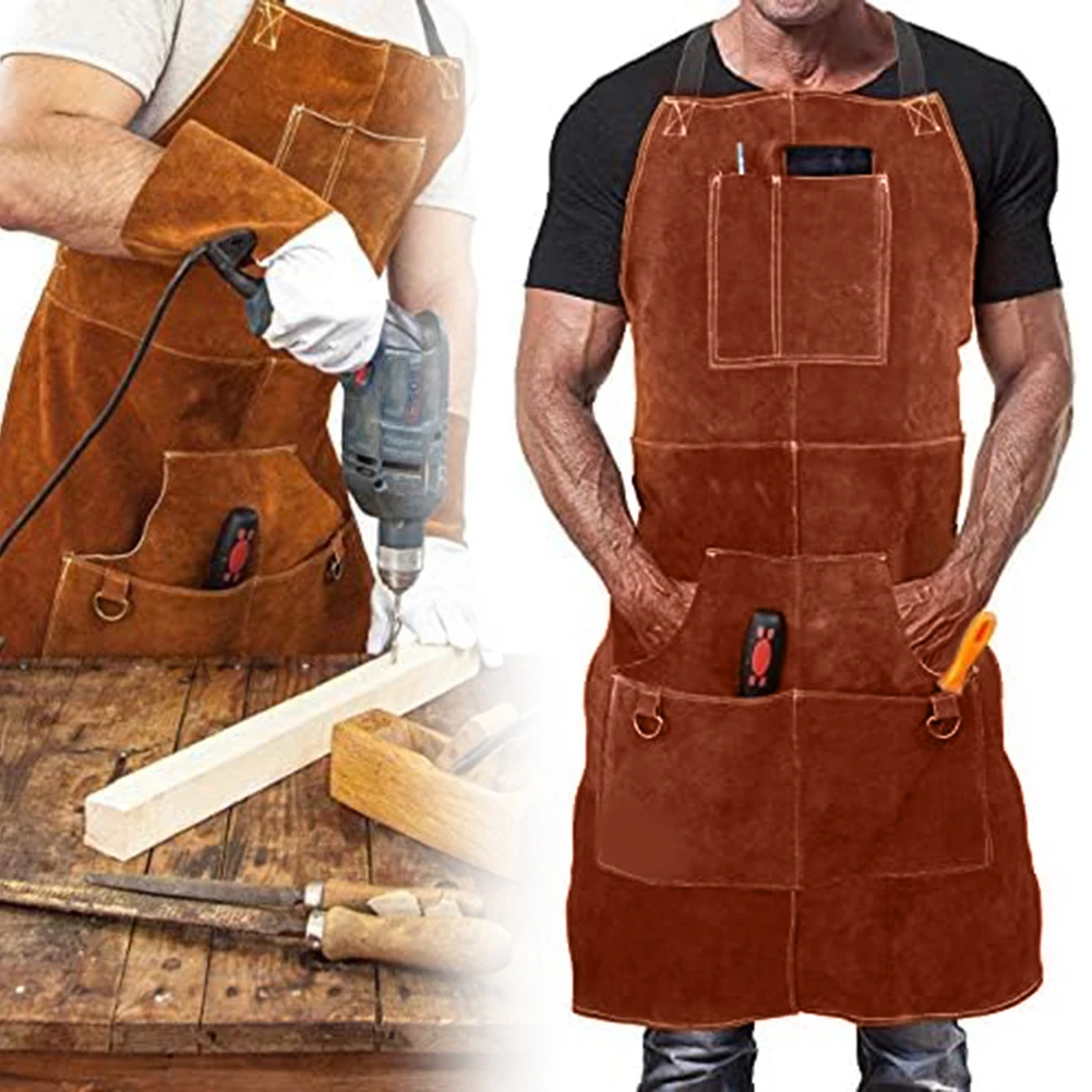 Leather Welding Apron With 6 Pockets For Men Heavy Duty Apron Heat Flame 61*91cm Leather Welding Apron Welding Protective Gear