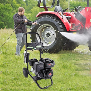 - Premium Accessories Included: Comes with a 25-foot wear-resistant, ultra-flexible hose, a lightweight high-pressure spray gun, and 5 quick-connect nozzles (0°, 15°, 25°, 40°, and soap). The 0.5-gallon fuel tank allows for easy refueling, while the powder-coated welded steel frame ensures durability and stability.