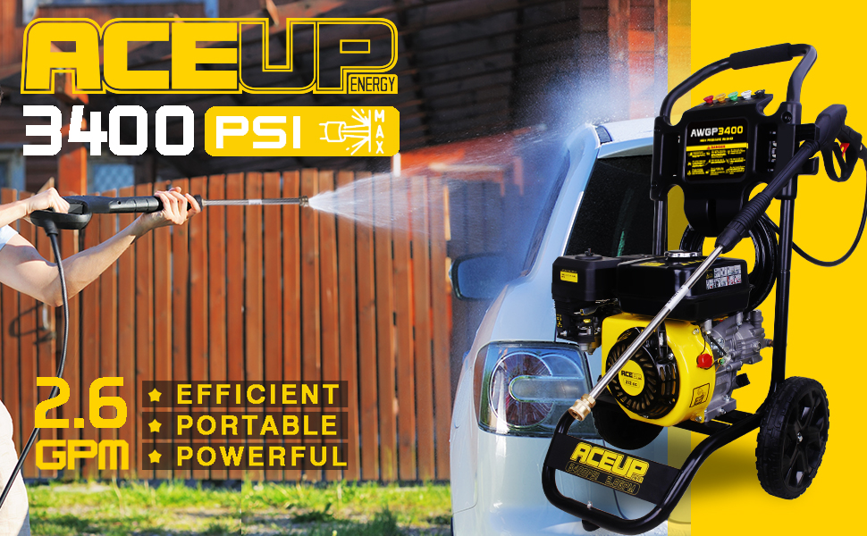 Aceup Energy Gas Pressure Washer 3400 PSI 2.6 GPM, High Pressure Washer 212CC Gas Power