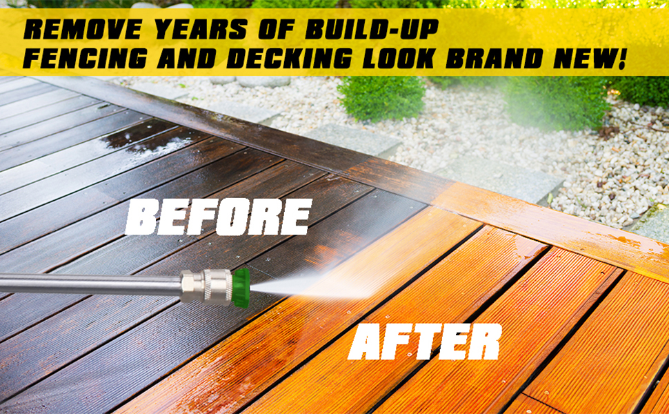 3400 PSI high pressure washer and 2.6GPM water flow, 120V with handle for cleaning even the most stubborn grime quickly and effortlessly, great for cleaning cars, bicycles, fences, patios, boats and yard.