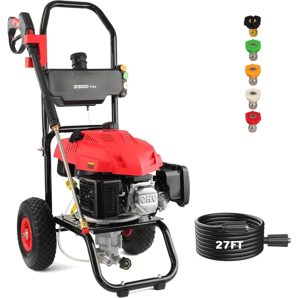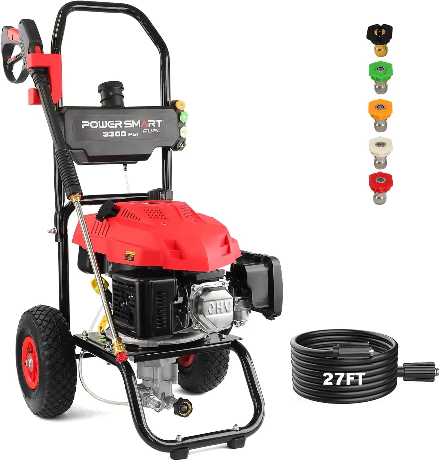 Gas Pressure Washer 3300 PSI, 2.5 GPM, 201cc, 3800W with Onboard Soap Tank, Metal Spray Wand, 5 Nozzle for Cleaning Equipment,