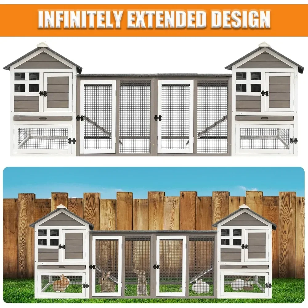 • 🐰【INFINITELY EXTENDED DESIGN】This rabbit hutch outdoor allows 2 combination ways for funny transformation. Buy 2 OR MORE bunny hutch to extending super large pet kingdom for your rabbit,guinea pig,hen.
