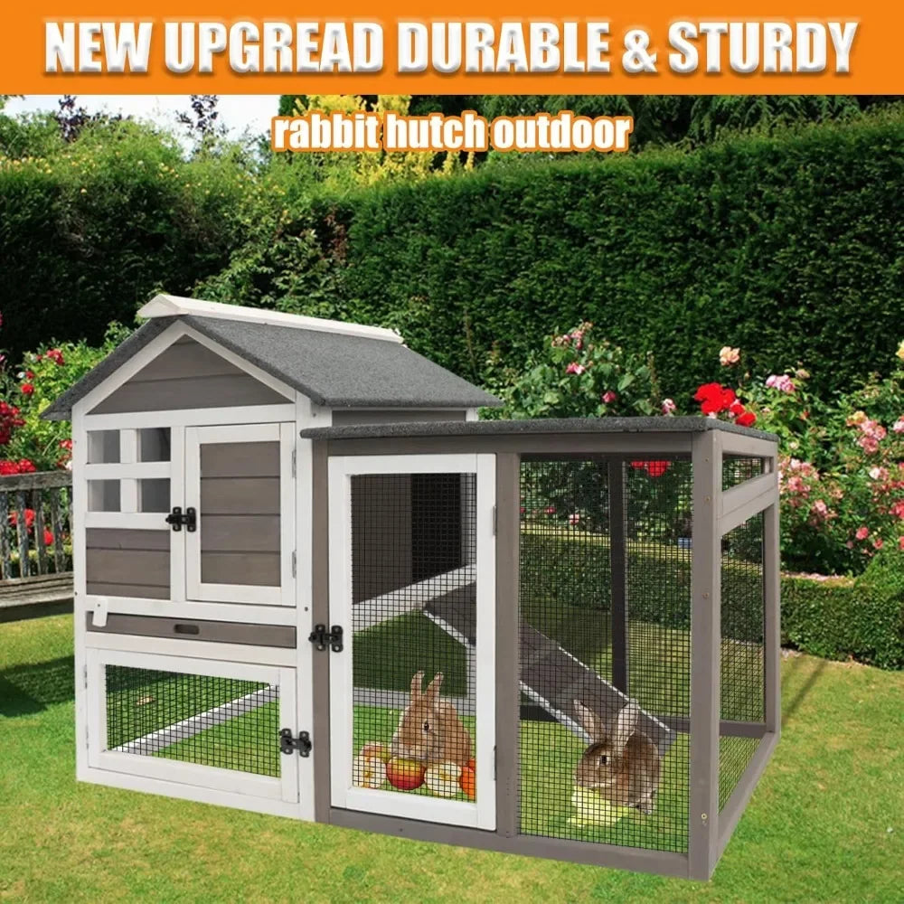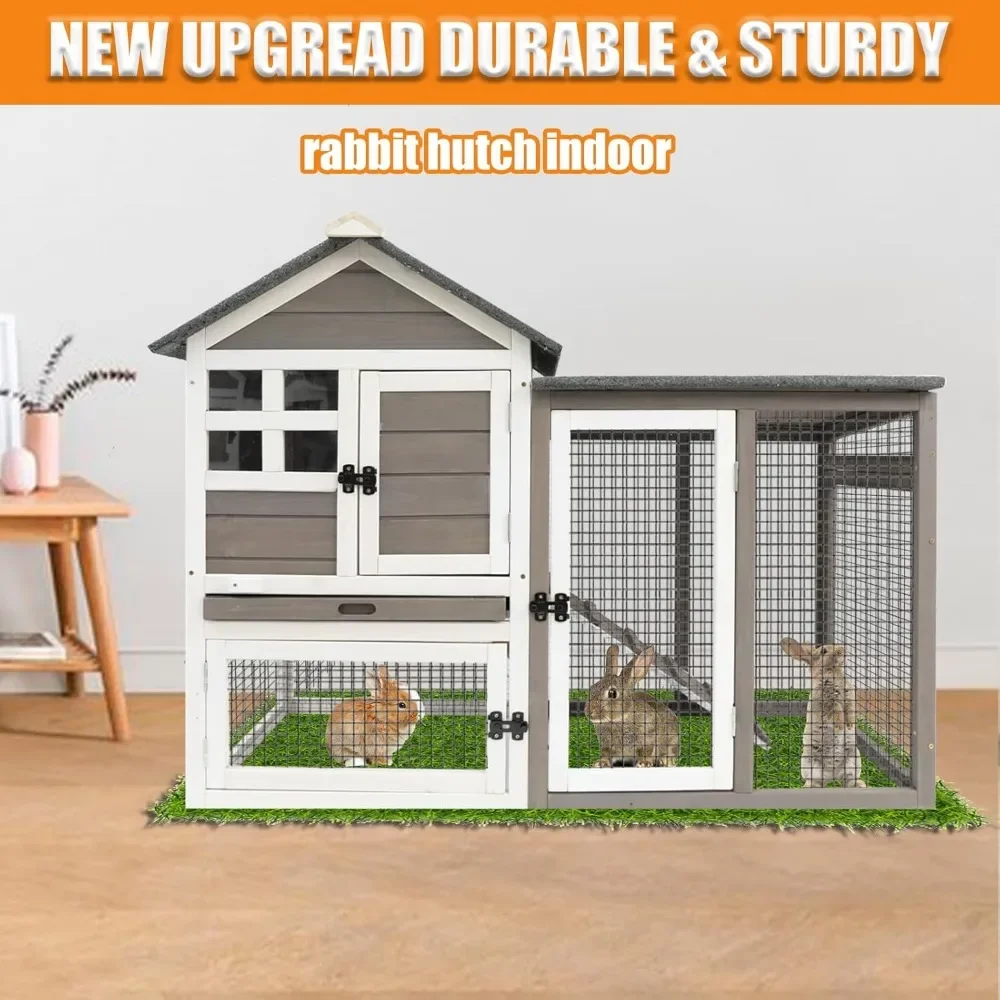 Hutch-Indoor Hutch Outdoor Rabbit Cages Indoor Rabbit Hutch with Pull Out Tray Large Rabbit Hutch FirWood Bunny Cages