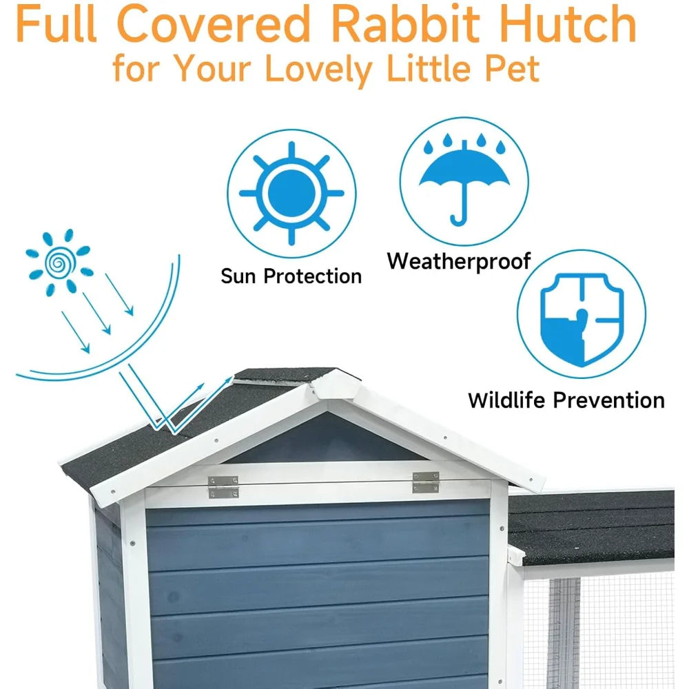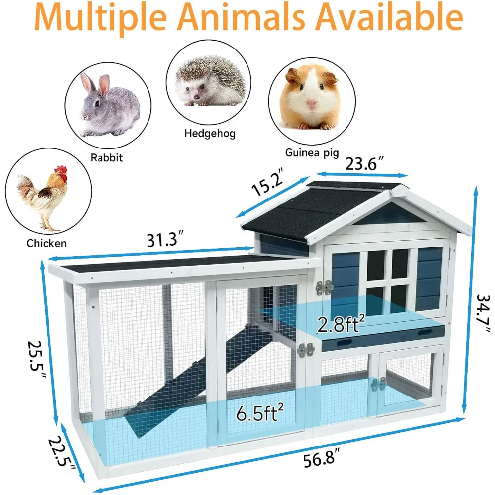 Large Outdoor Rabbit Hutch Weatherproof 2-Story Chicken Coop & Bunny Cage, Wooden Indoor/Outdoor Pet House with No-Leak Tray