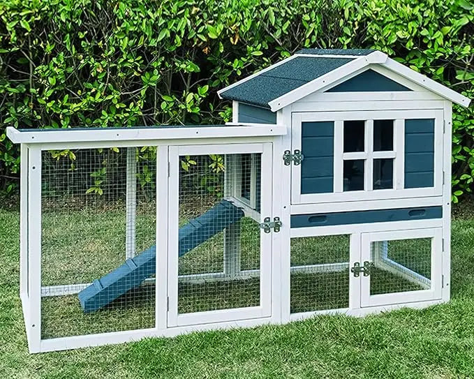 • MULTI-FUNCTIONAL INDOOR/OUTDOOR SPACE:Use as a chic indoor bunny house or backyard chicken coop. Widened ramp, 2-story design, and 4 doors allow pets to play freely while you interact through multiple access points