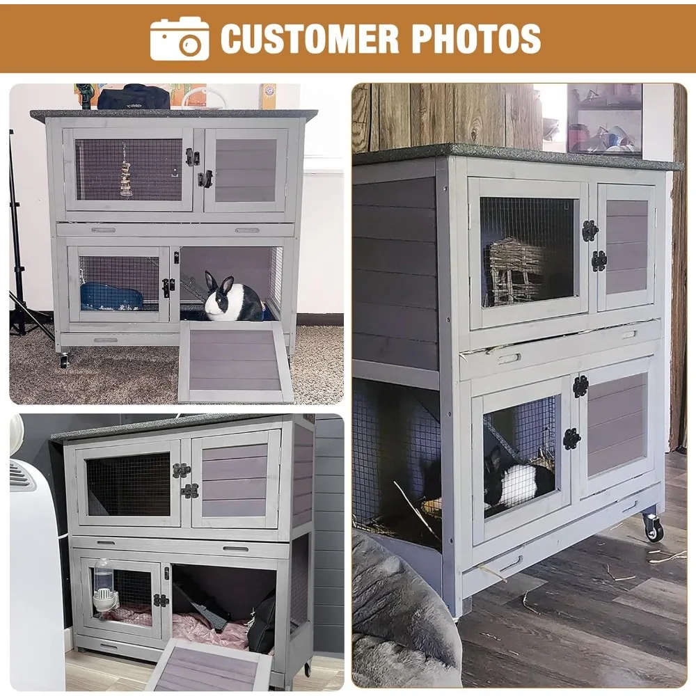 - Rabbit cage with TWO DEEPER pull out trays that won't leak off and easy-to-clean.