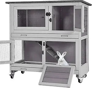 Rabbit Hutch Indoor Outdoor, Bunny Cage with Casters, Guinea Pig Cage Bunny Hutch with Two Plastic Trays 36inch