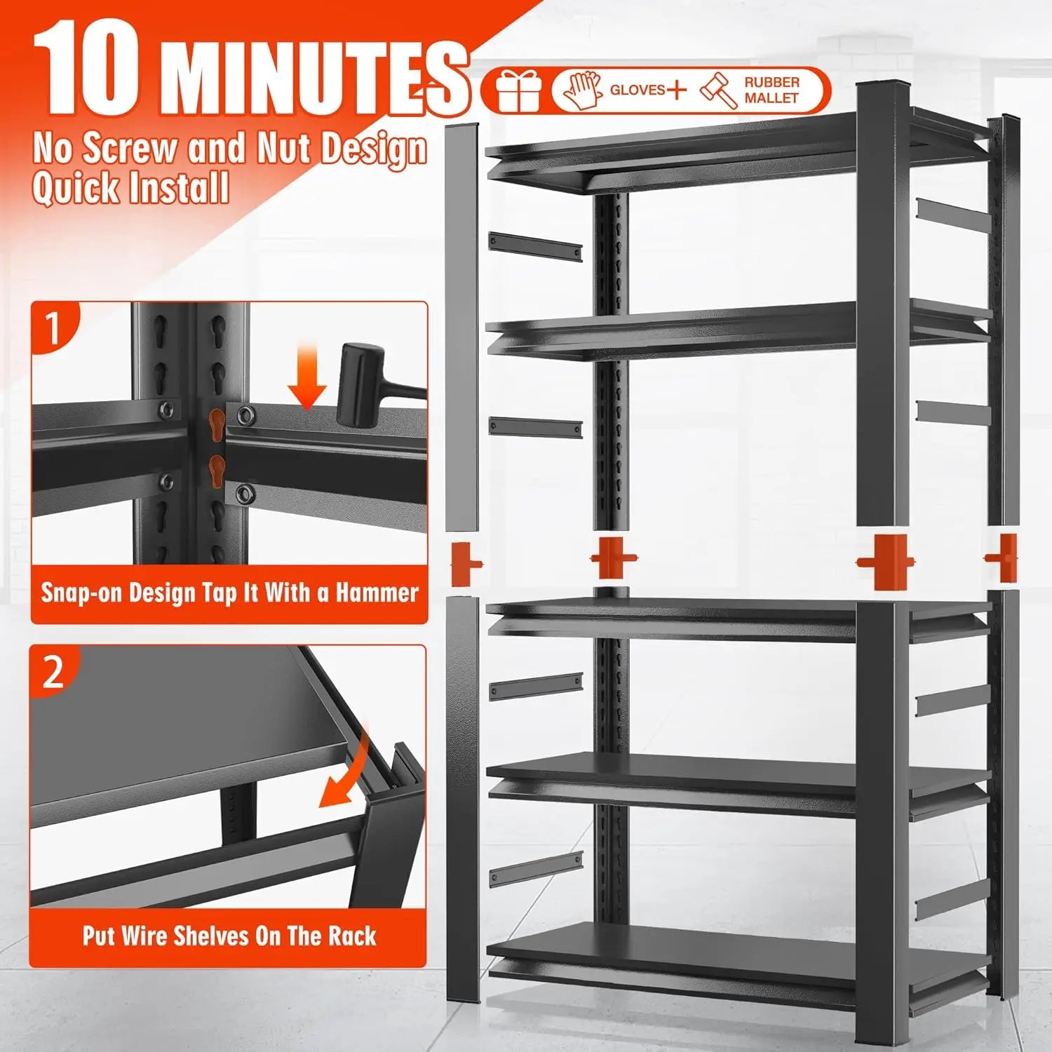 78"H Garage Shelving Unit and StorageEasy Assembly Metal Shelves 5-Tier Utility Rack| Heavy-Duty Adjustable Shelf| Steel Rust