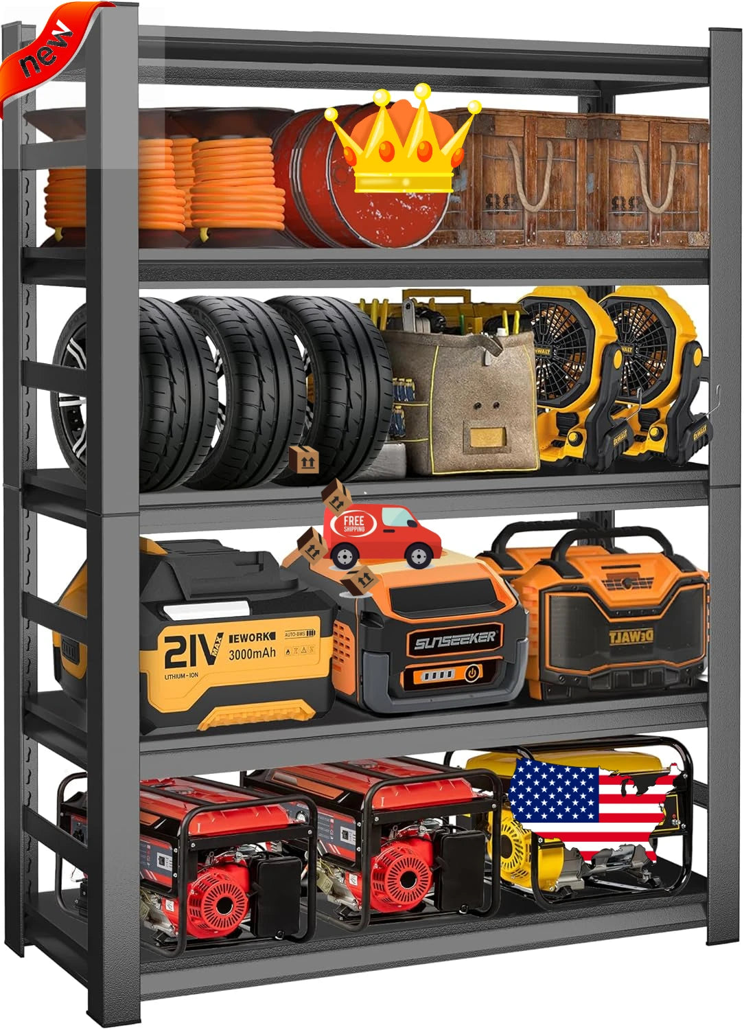 - 2.【Exceptional Flexibility - 5 Adjustable Shelves to Meet Any Storage Needs】Featuring a unique design, each shelf height can be freely adjusted. Whether for tall or small items, everything finds its perfect place, greatly enhancing storage efficiency and keeping your garage neat and organized.